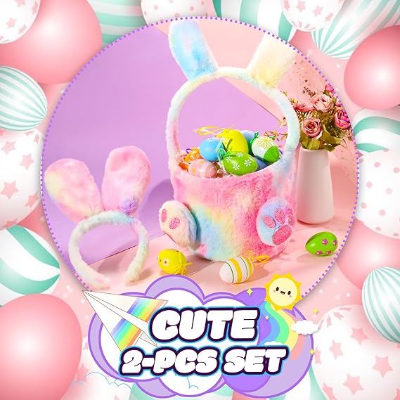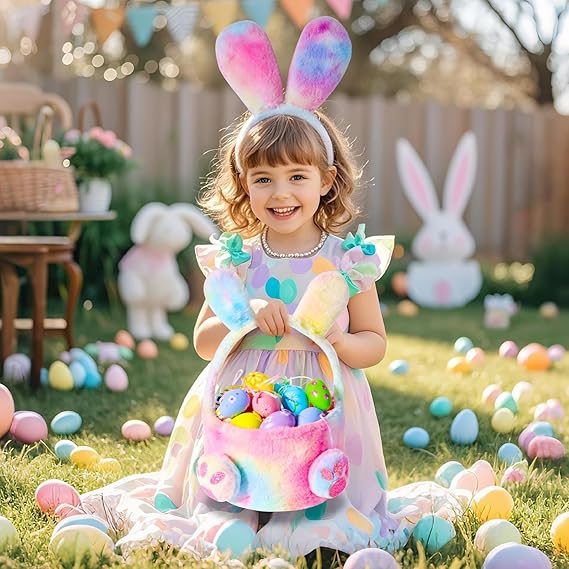 Bunny Ears and Tail for kids,Bunny Headbands with Pink Bunny Gloves/Bakset and Bunny Costume for Girls