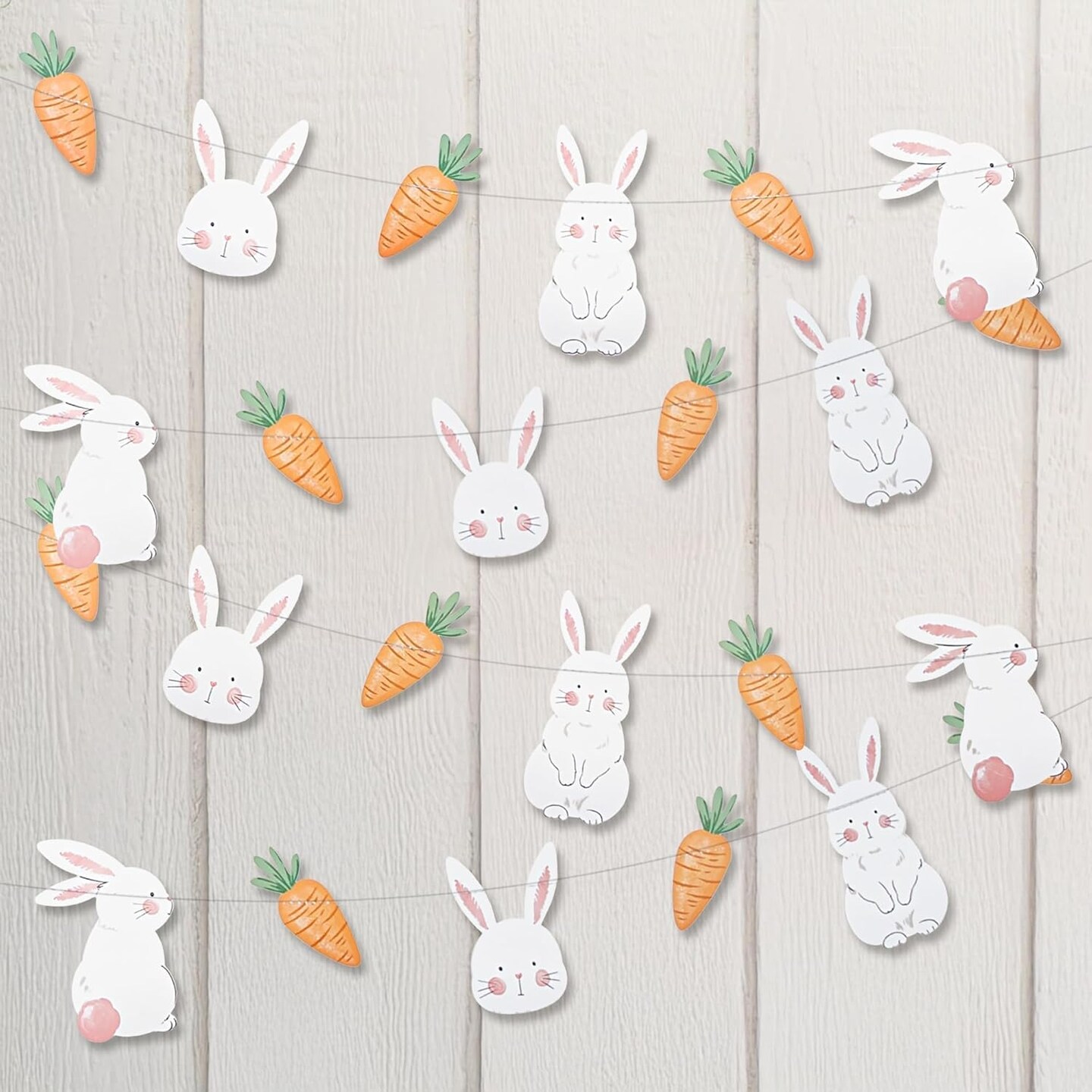 Bunny Garland Easter Party Decorations Cute Rabbit Carrot Banner Hanging Streamers for Birthday Baby Shower Classroom Home Office Decor Garden Pet Animal Spring Tea Party Supplies 2pcs