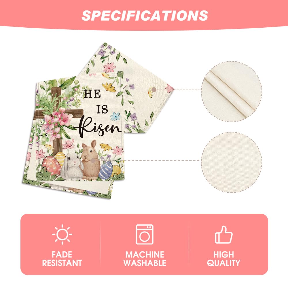 Bunny Rabbits Eggs He is Risen Easter Table Runner, Seasonal Spring Kitchen Dining Table Decoration for Home Party Decor 13x72 Inch