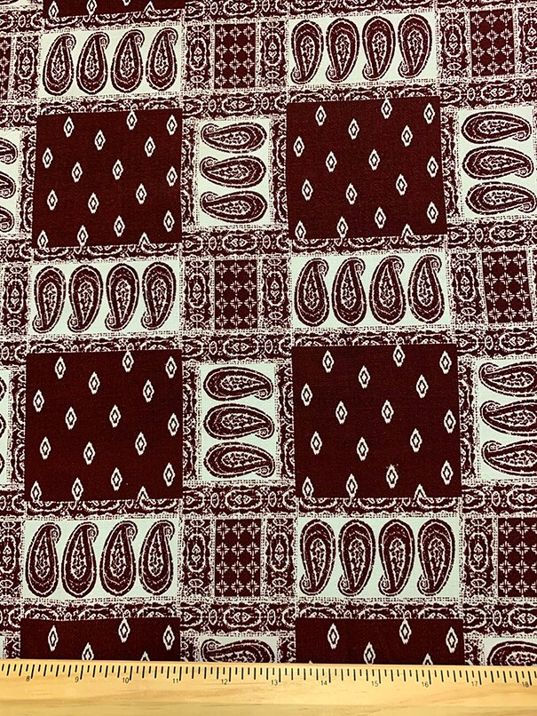Burgundy and White Bandana Patchwork Print Rayon Challis Fabric By the Yard