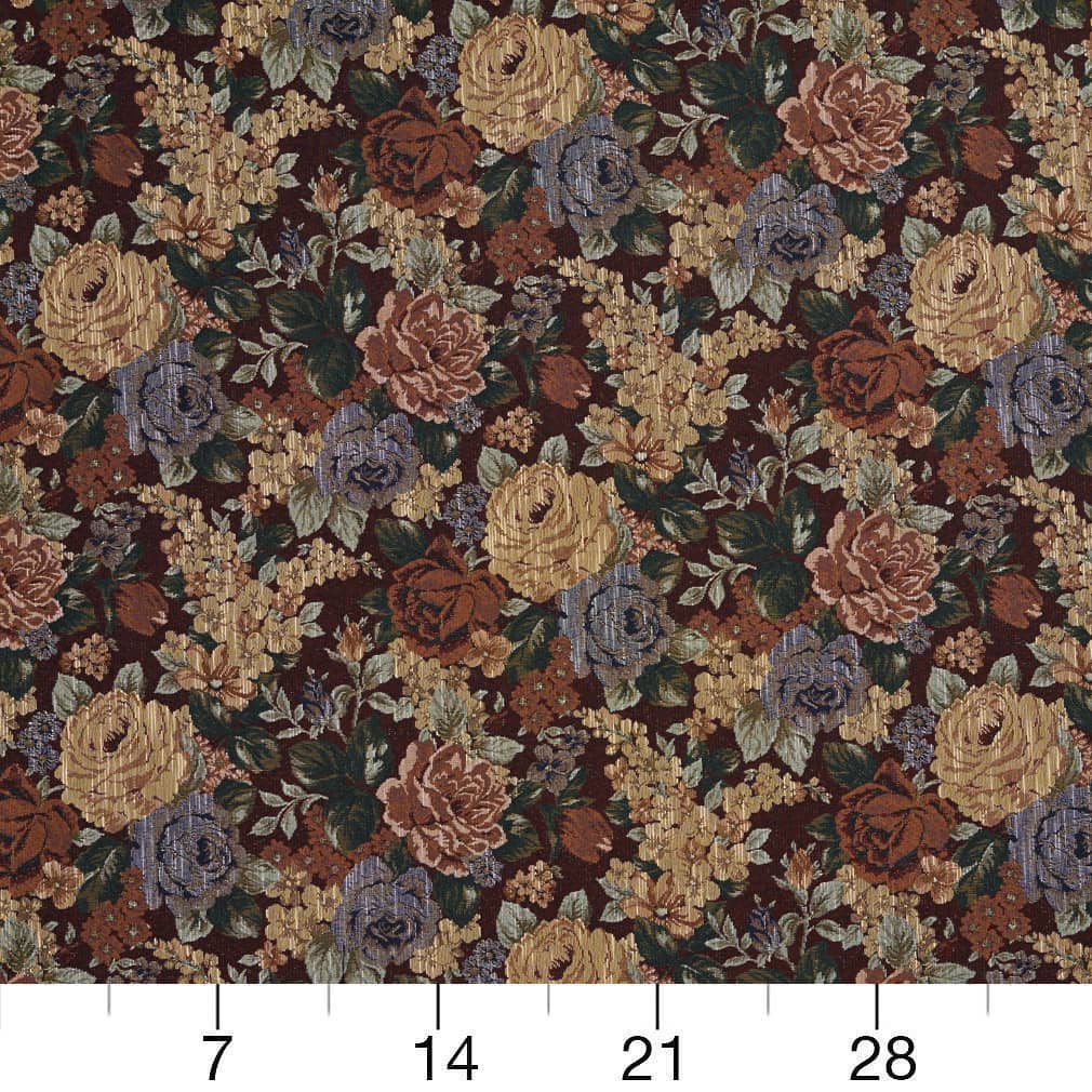 Burgundy - Orange & Rust Floral Upholstery Fabric 54 Inches"
