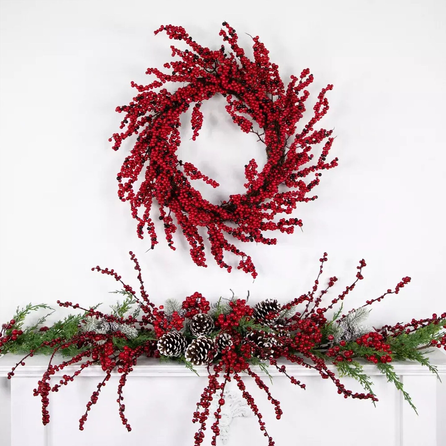 Burgundy Red Artificial Berry Christmas Wreath with Natural Twig 22 Inch