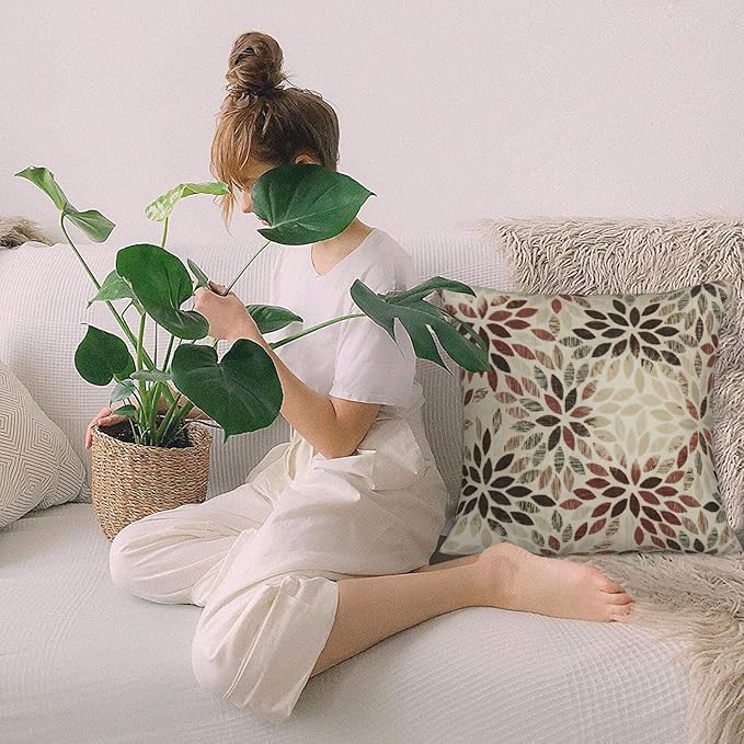 Burgundy Red Brown Pillow Covers 18x18 Inch Set of 2 Summer Rust Geometric Flower Outdoor Decorative Throw Pillows Farmhouse Dahlia Pillow Case Linen Square Cushion Cover for Home Sofa Bedroom