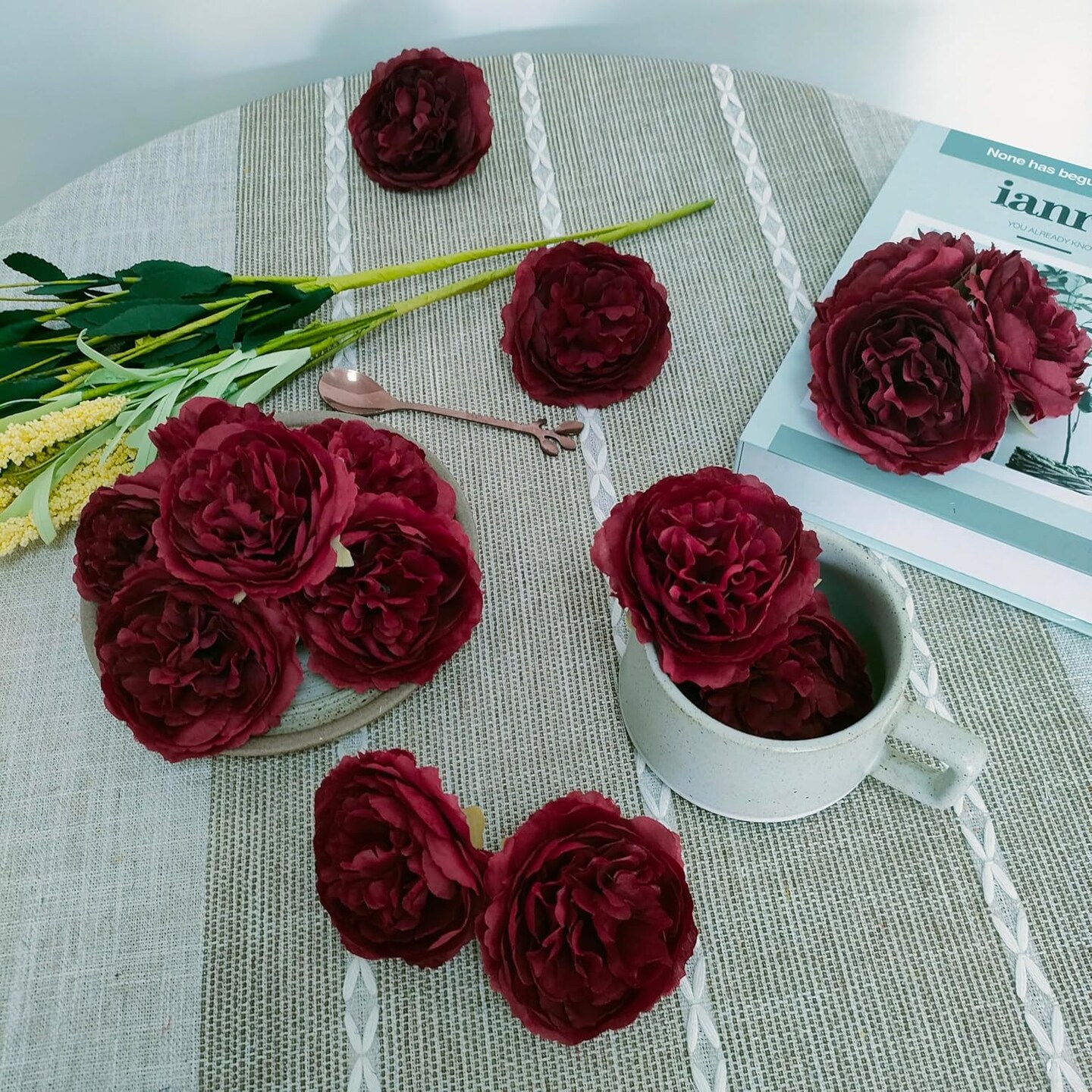 Burgundy Rose Heads Artificial Flowers(Burgundy)