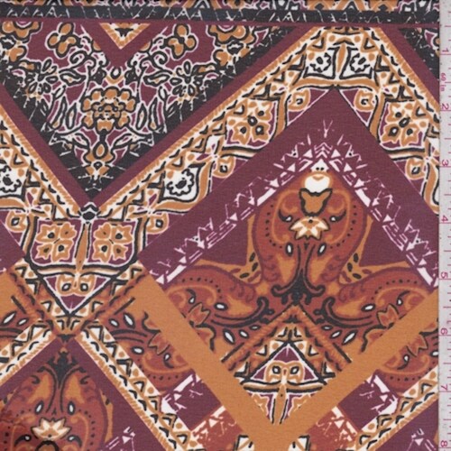 Burgundy/Orange Deco Diamond Chiffon Fabric By the Yard