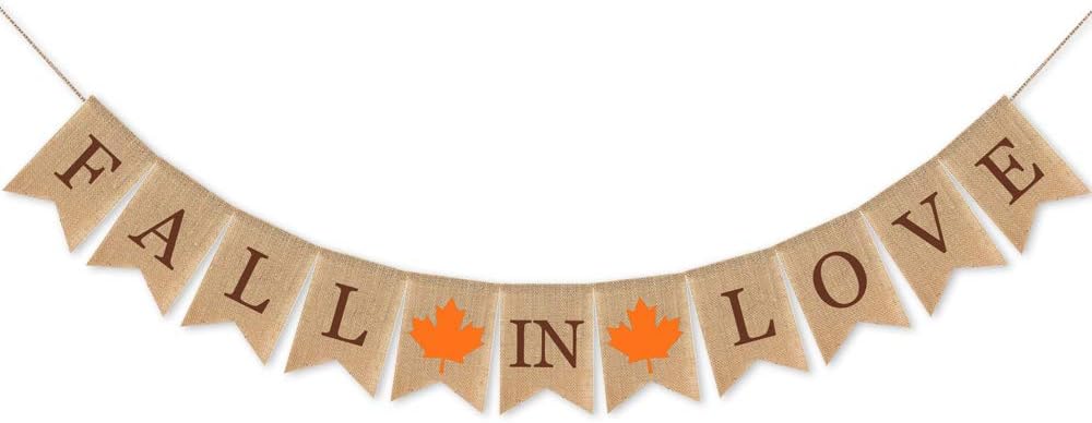 Burlap Fall in Love Banner with Maple Leaf Sign Fall Autumn Wedding Garland Supplies Engagement Bridal Shower Decoration