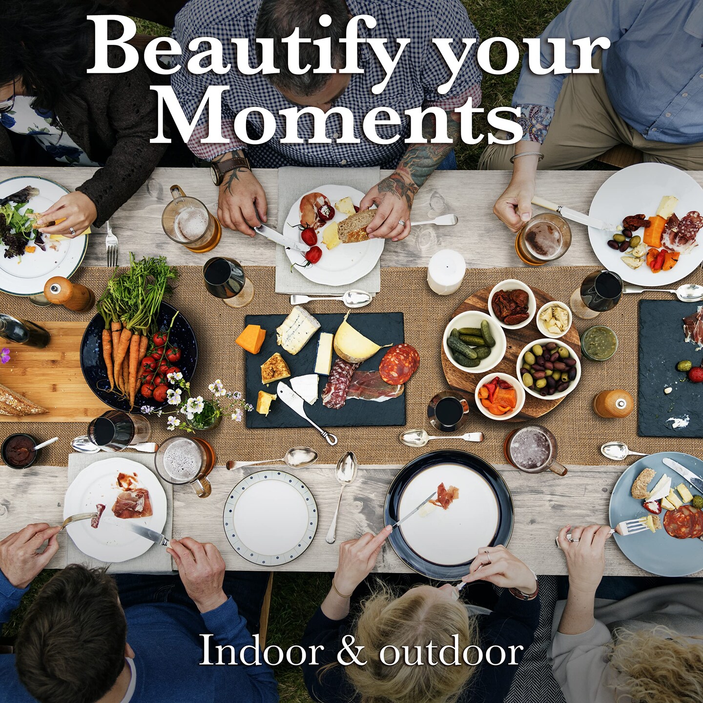 Burlap Table Runners, 13 x 108 Inch - 2 Pack Outdoor Rustic Jute Table Runner for Fall, Thanksgiving, Farmhouse Decor, Natural Color Edge