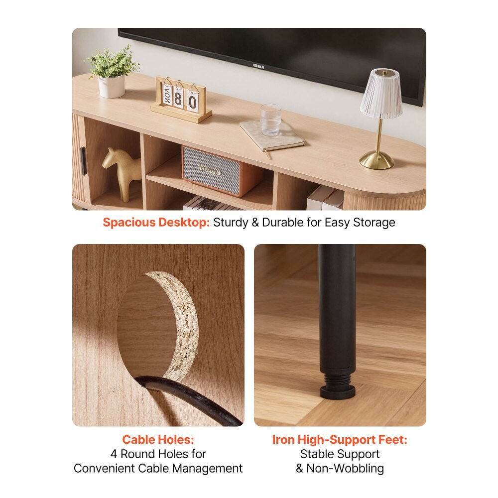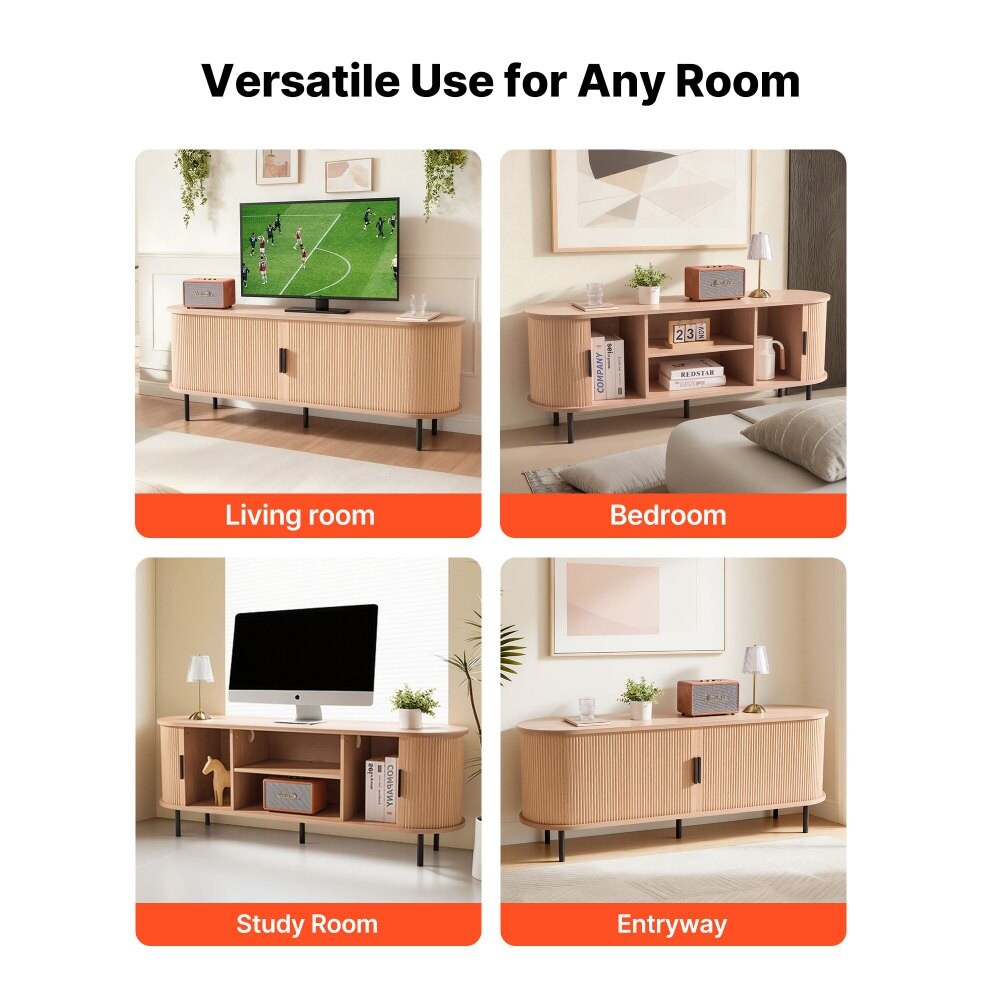 Burlywood Boho TV Stand for 58 in TVs with Rolling Door and Adjustable Shelves