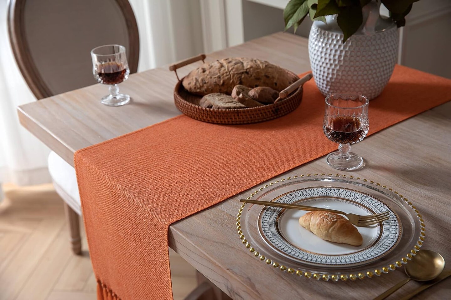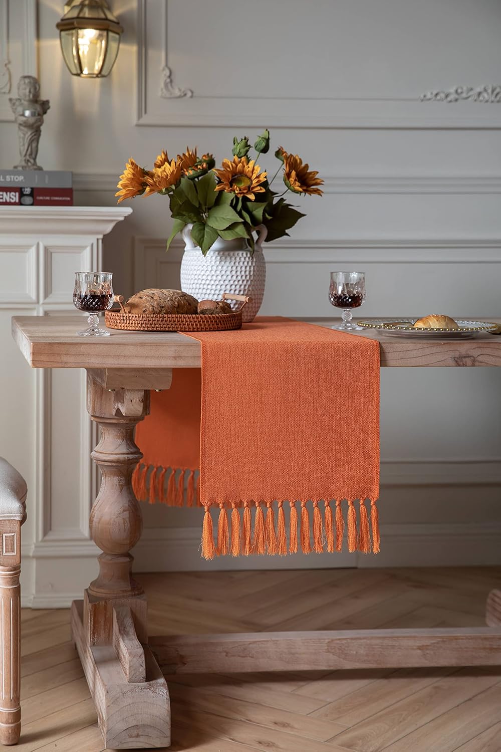 Burnt Orange Fall Table Runners (Classic Burlap/Harvest Pumpkin) 13x72 Inch