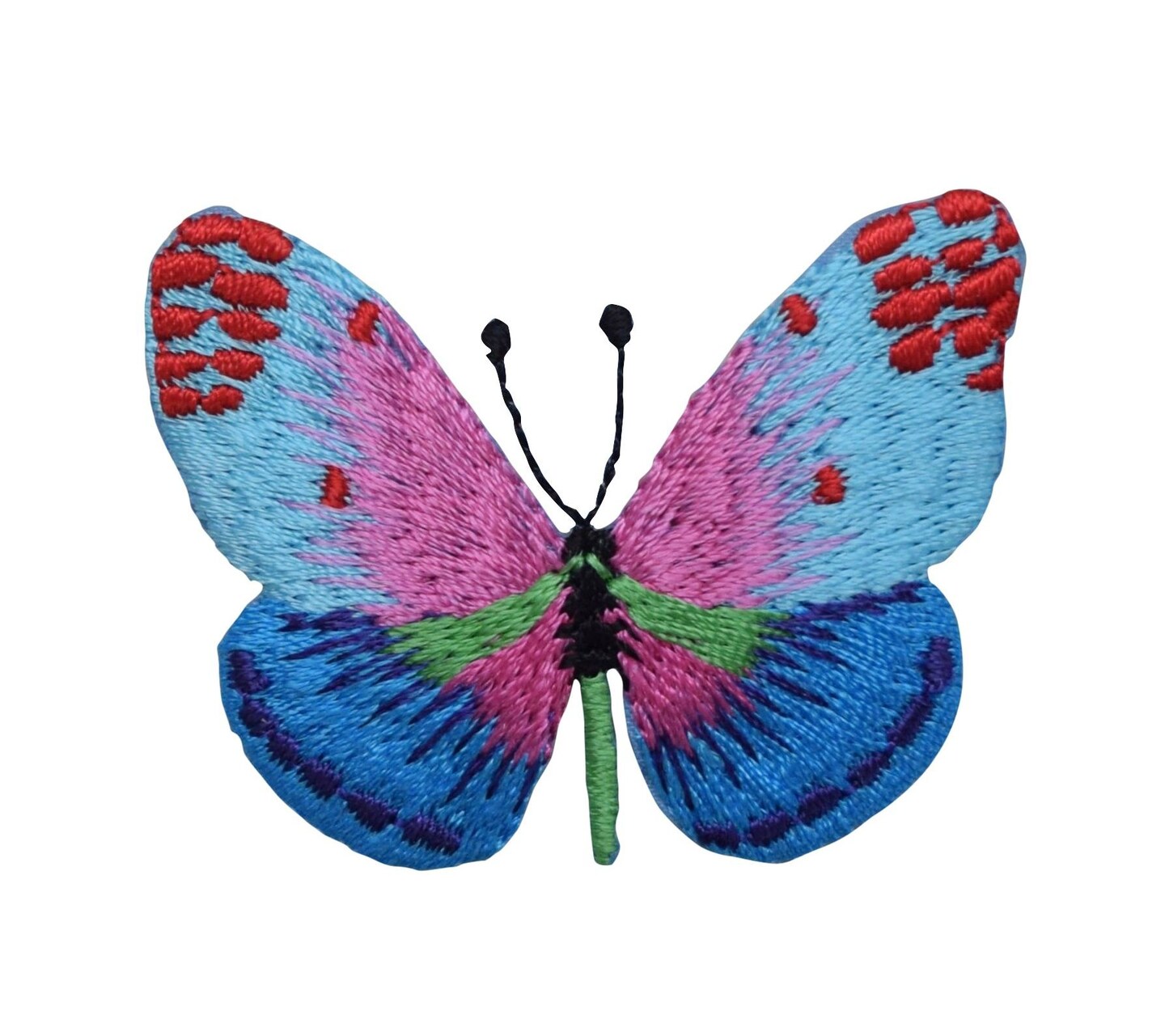 Butterfly - Blue and Pink, Embroidered, Iron on Patch
