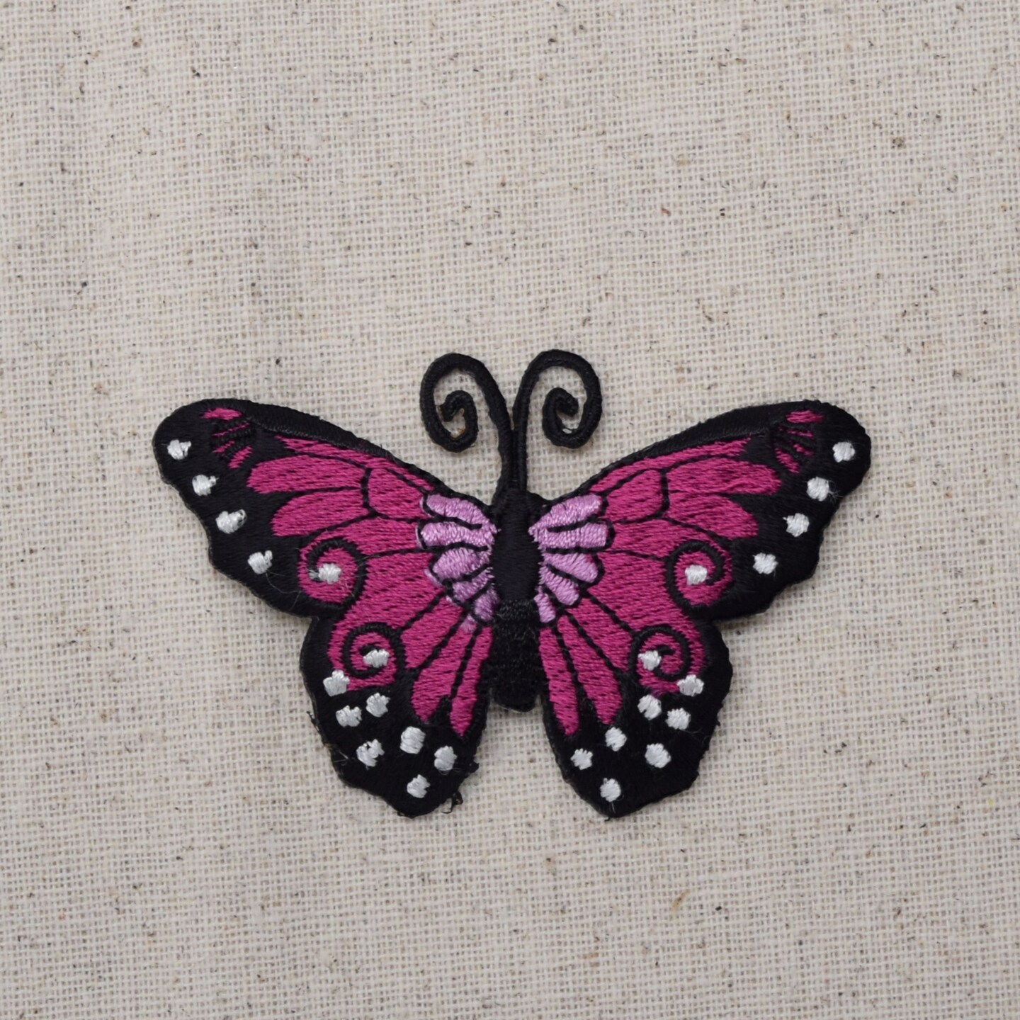 Butterfly - Dark Fuchsia Embroidered, Iron on Patch
