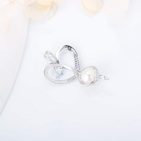 Butterfly Heart Cage Pendants for Pearl Jewelry Making Sterling Silver