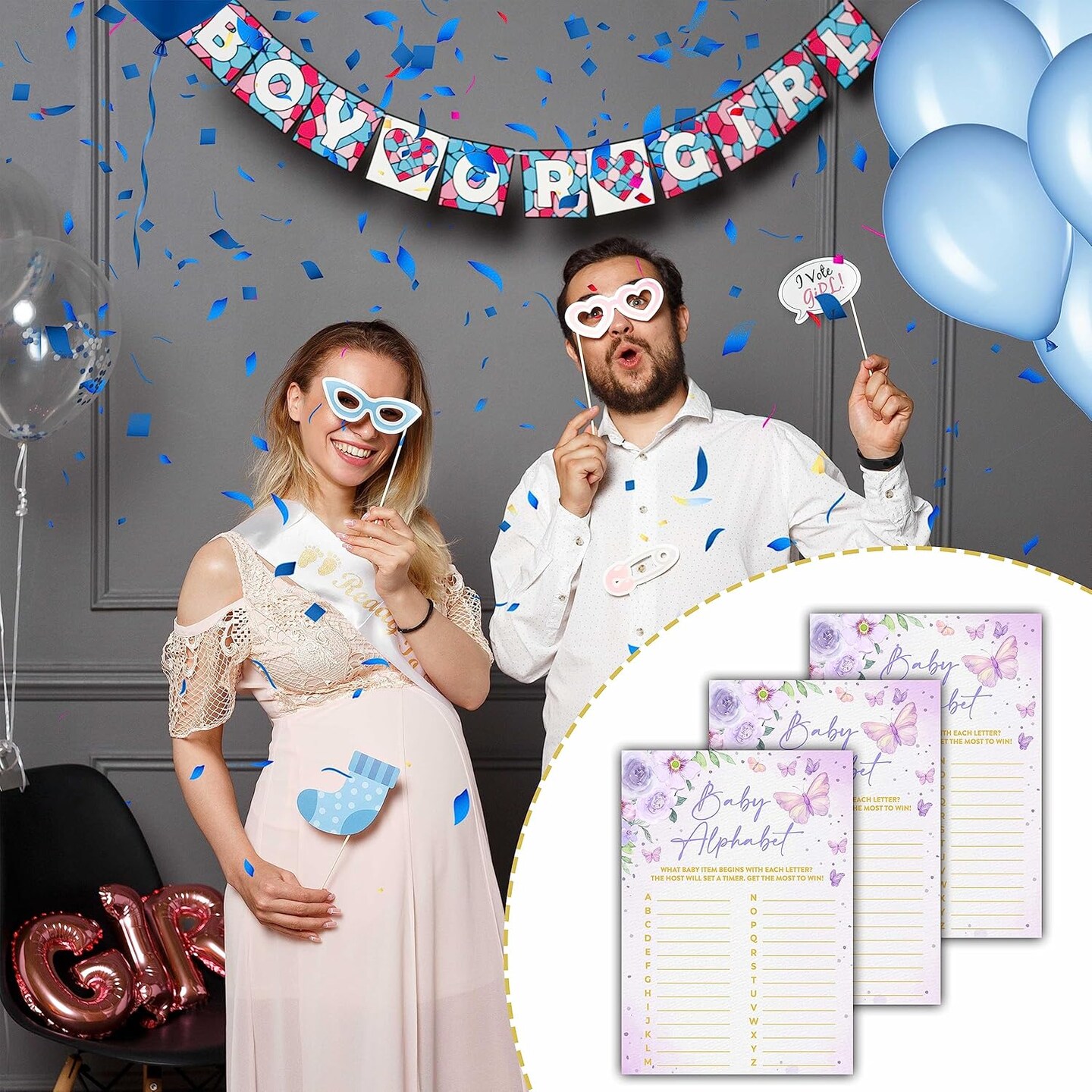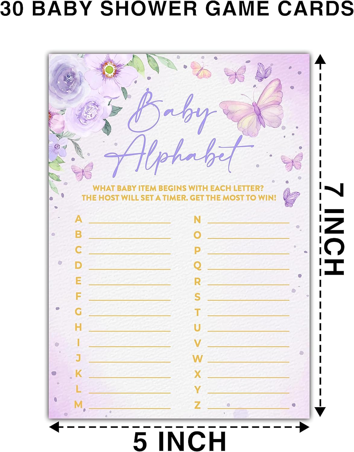 Butterfly Kisses Baby Shower Games, 30 Baby Alphabet Game Cards, Gender Reveal Party Supplies Favors (5"x7")