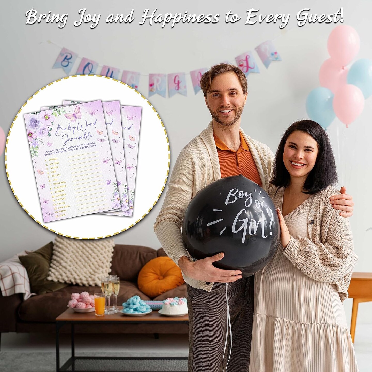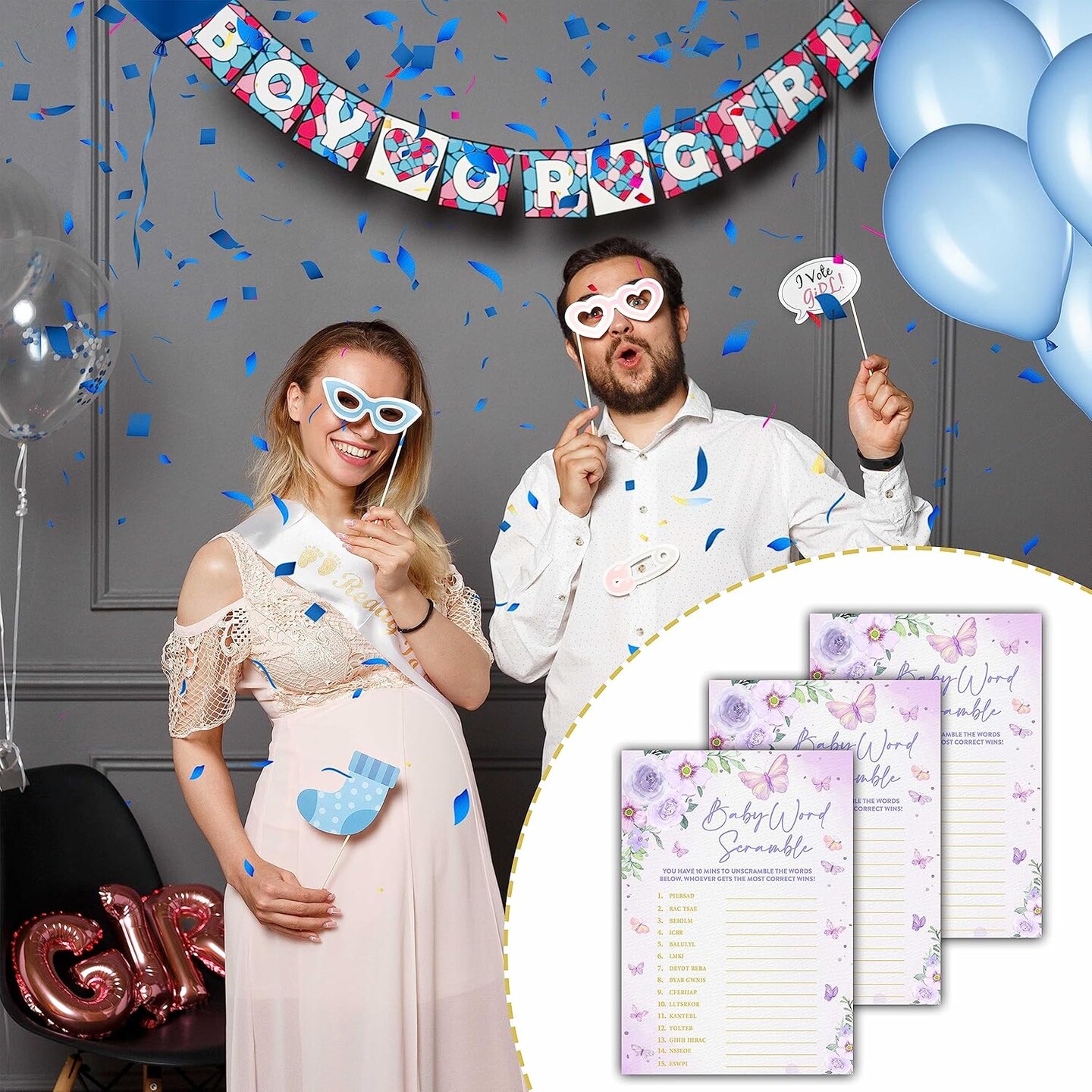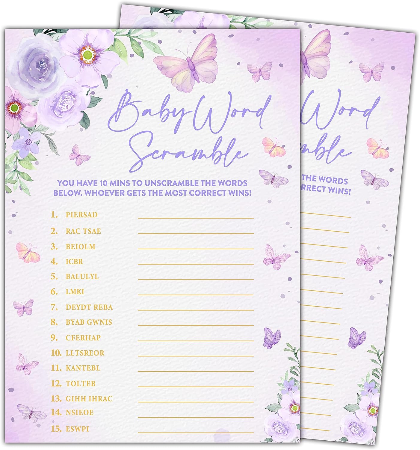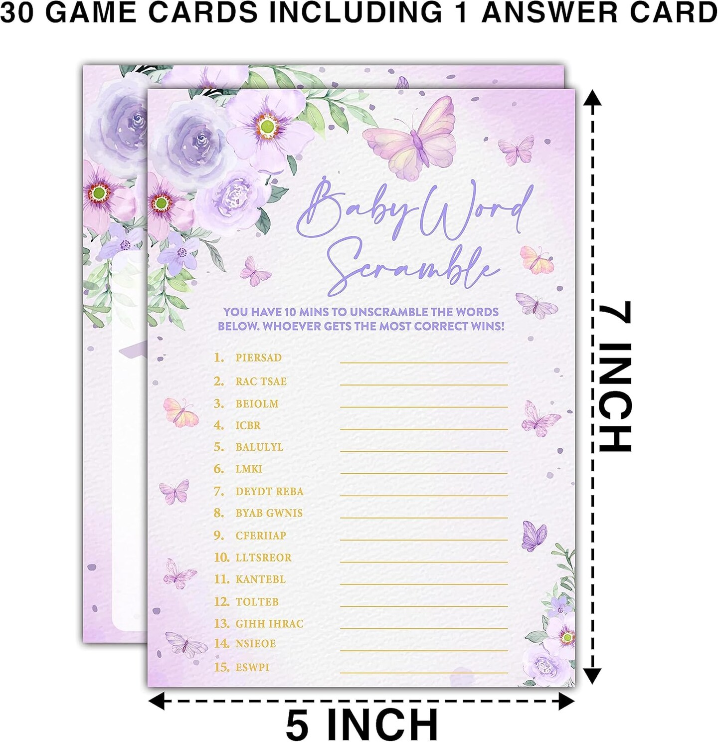 Butterfly Kisses Baby Shower Games, 30 Baby Word Scramble Game Cards with 1 Answer Card, Gender Reveal Party Supplies Favors (5"x7")