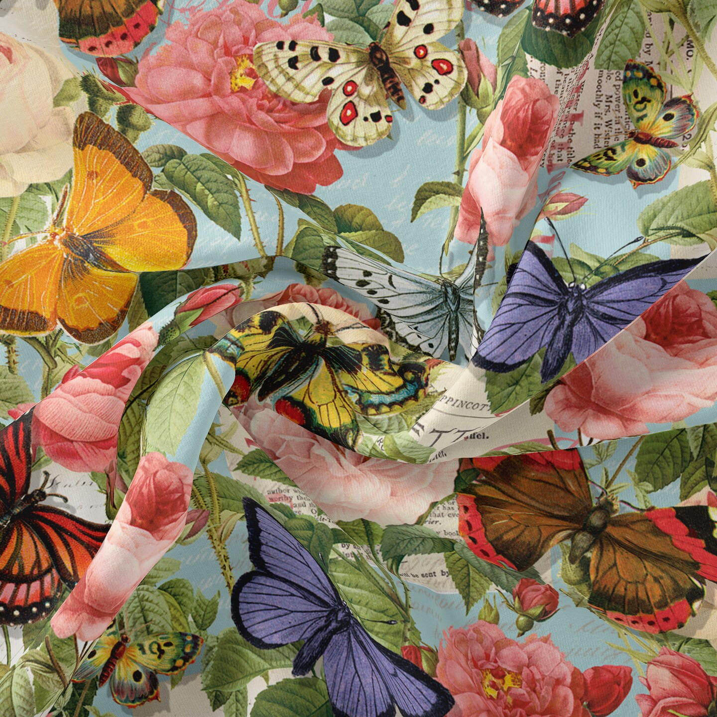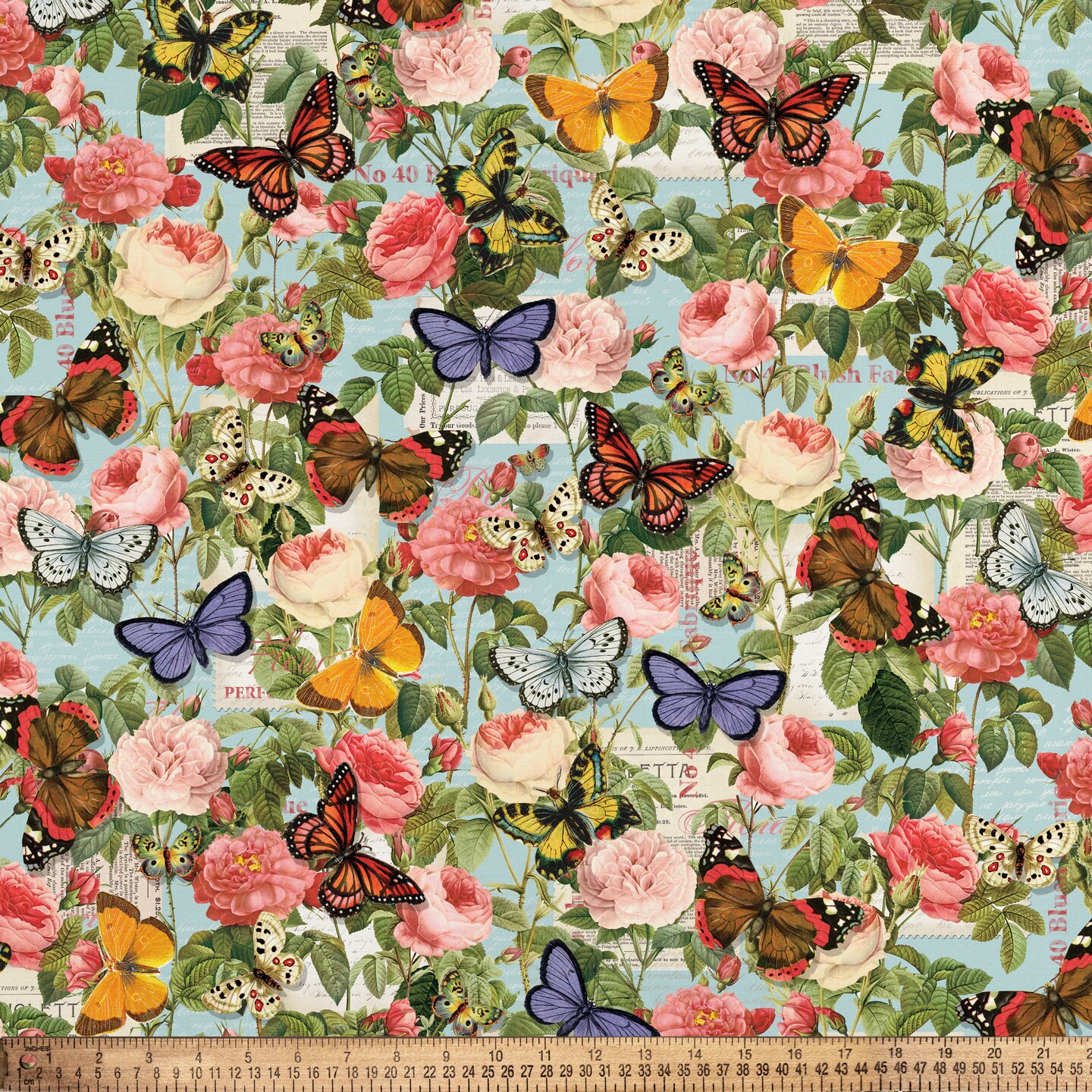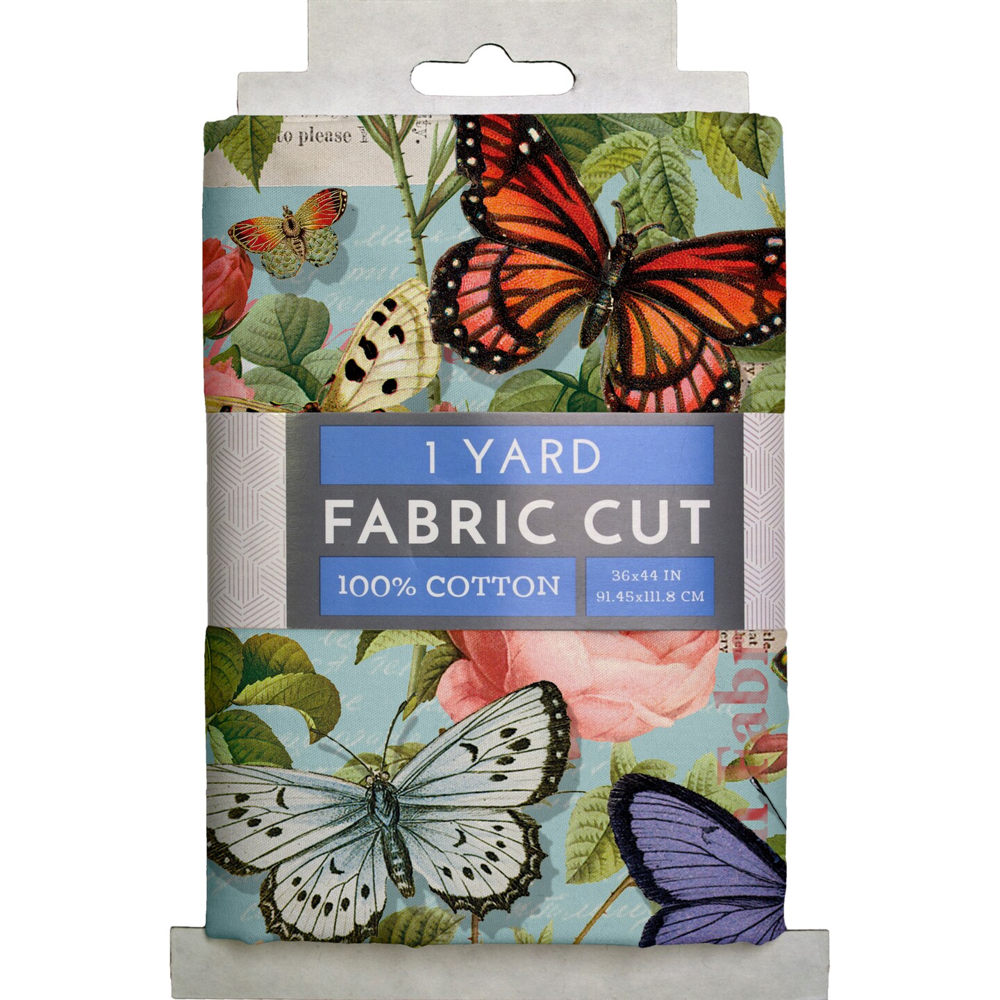 BUTTERFLY & ROSES COTTON 1 YD CUT