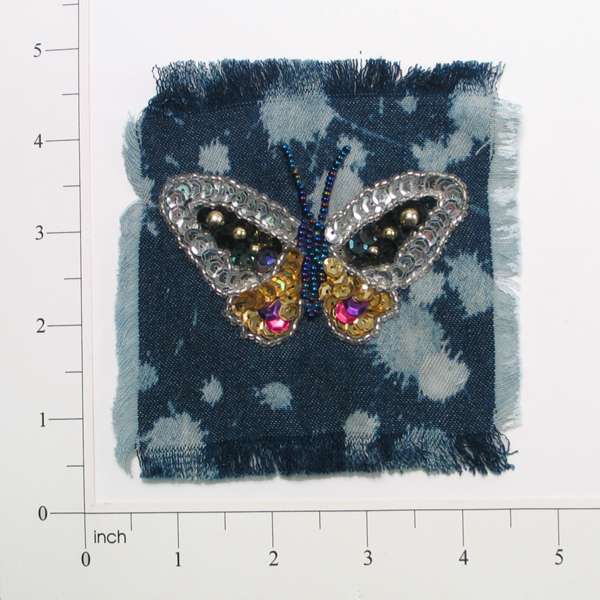Butterfly Sequin on Denim Applique/Patch 4 1/4" x 4"