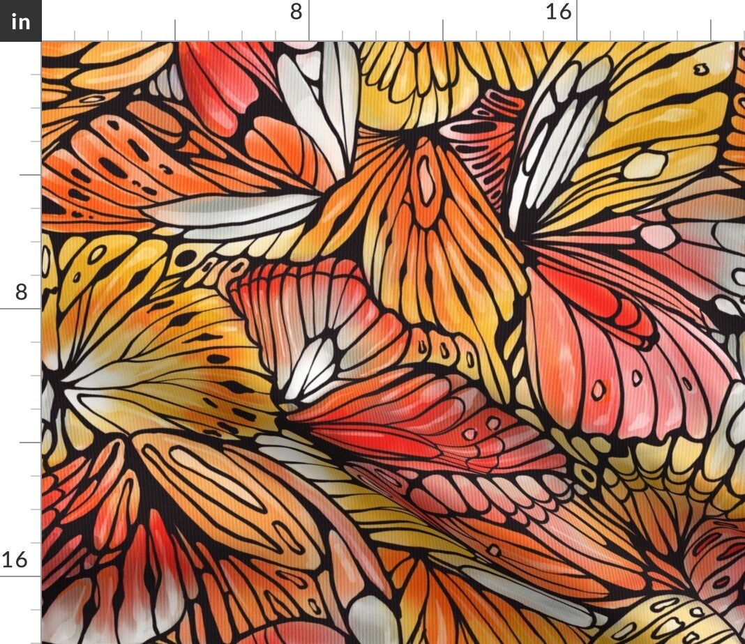 Butterfly Wings Red Orange Large Scale Watercolor Custom Printed Fabric by Spoonflower Various Fabrics by the Yard or Fat Quarter