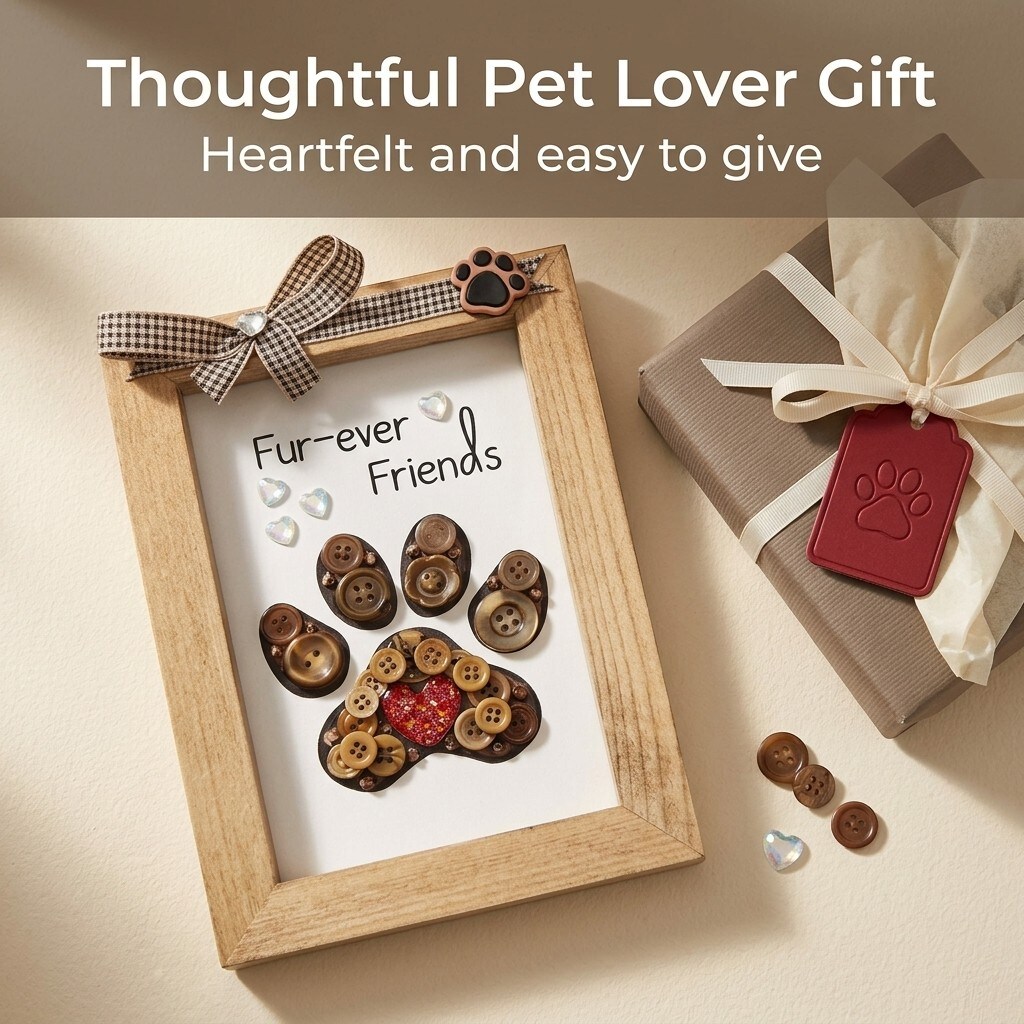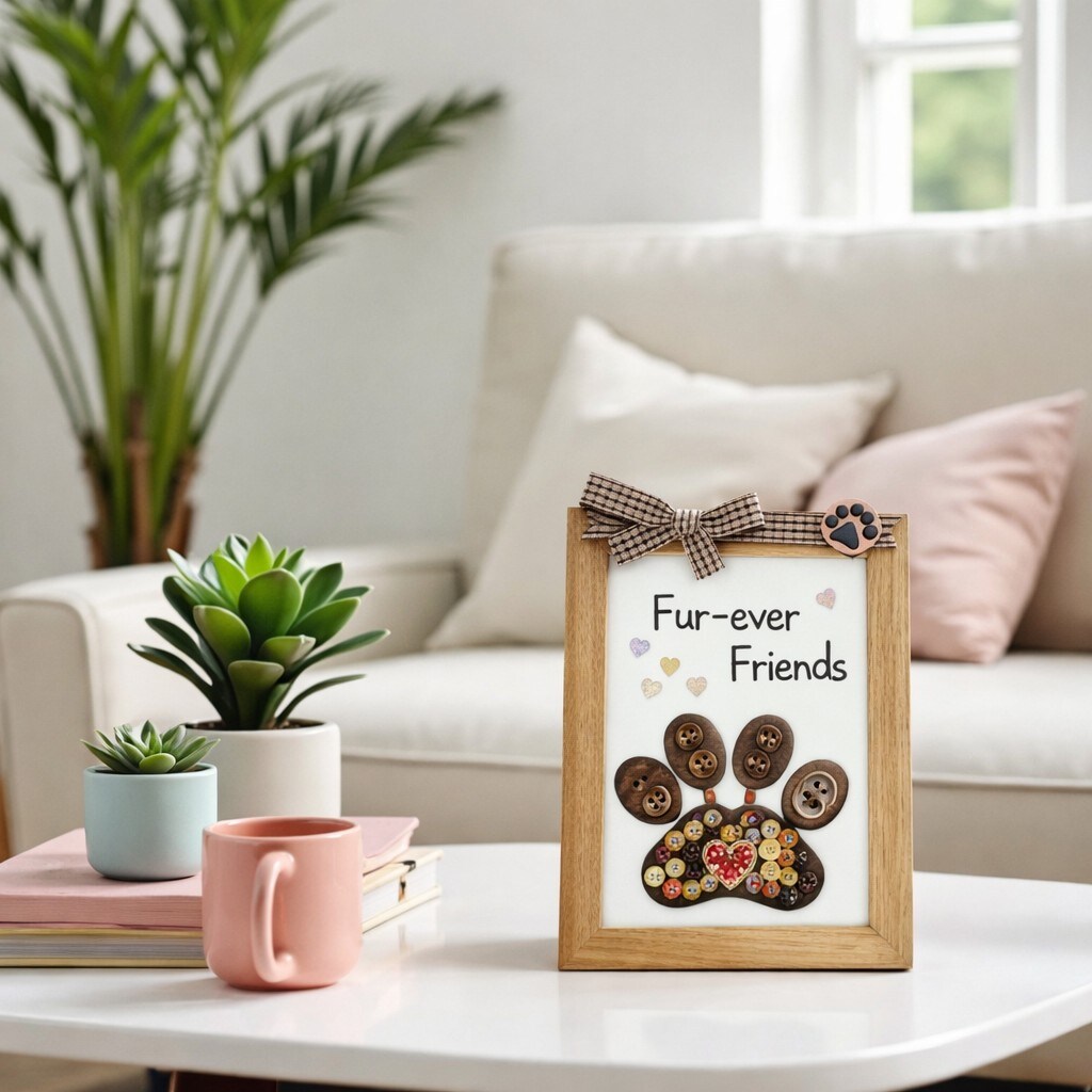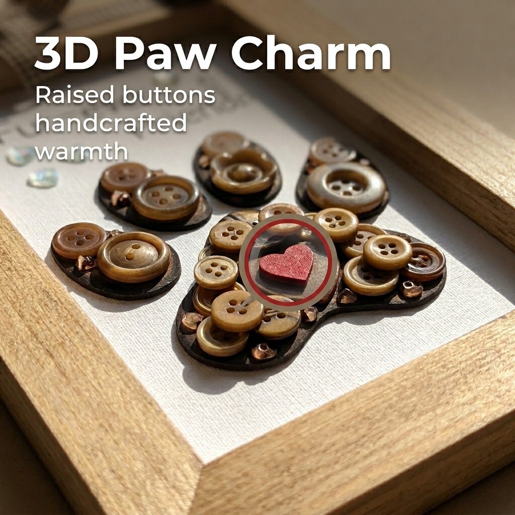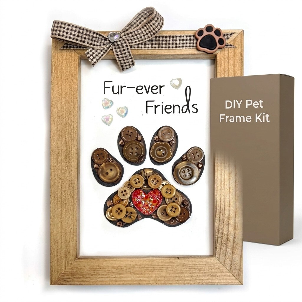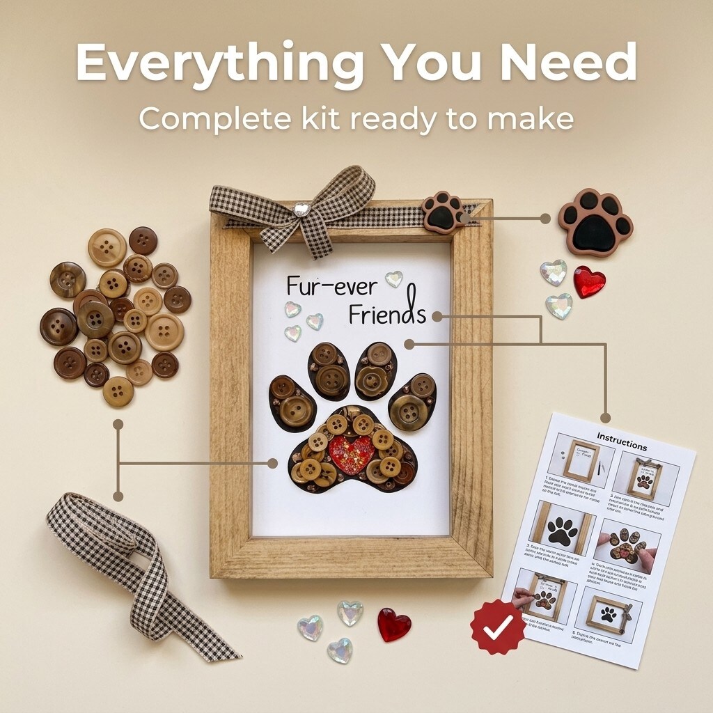 Buttons Galore & More Pet Paw Picture Frame DIY Craft Kit, Natural Wood, Button Art Design, 5x7 Inches, Wall Decor with Ribbon, Ages 6+
