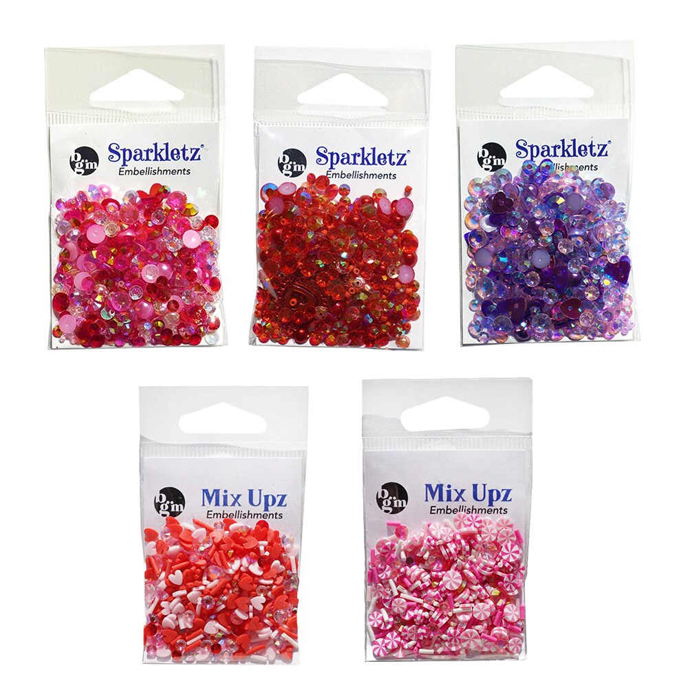 Buttons Glore Valentine’s Day Embellishment Set – 50g of Flat Back Pearls, Heart Sequins, Sprinkles & Rhinestones for DIY Crafts, Scrapbooking & Shaker Projects