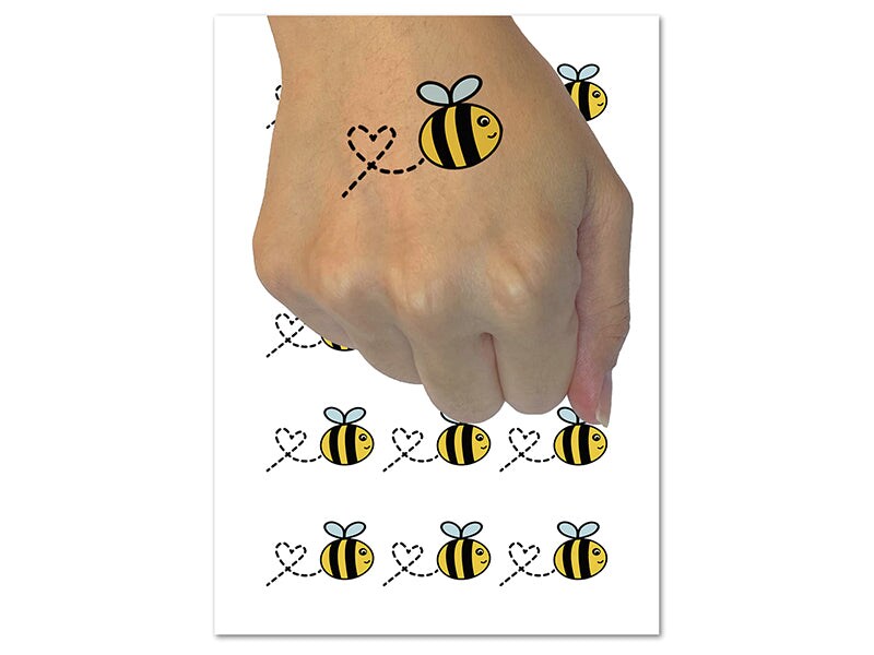 Buzzy Bumble Bee with Heart Temporary Tattoo Water Resistant Fake Body Art Set Collection (1 Sheet)