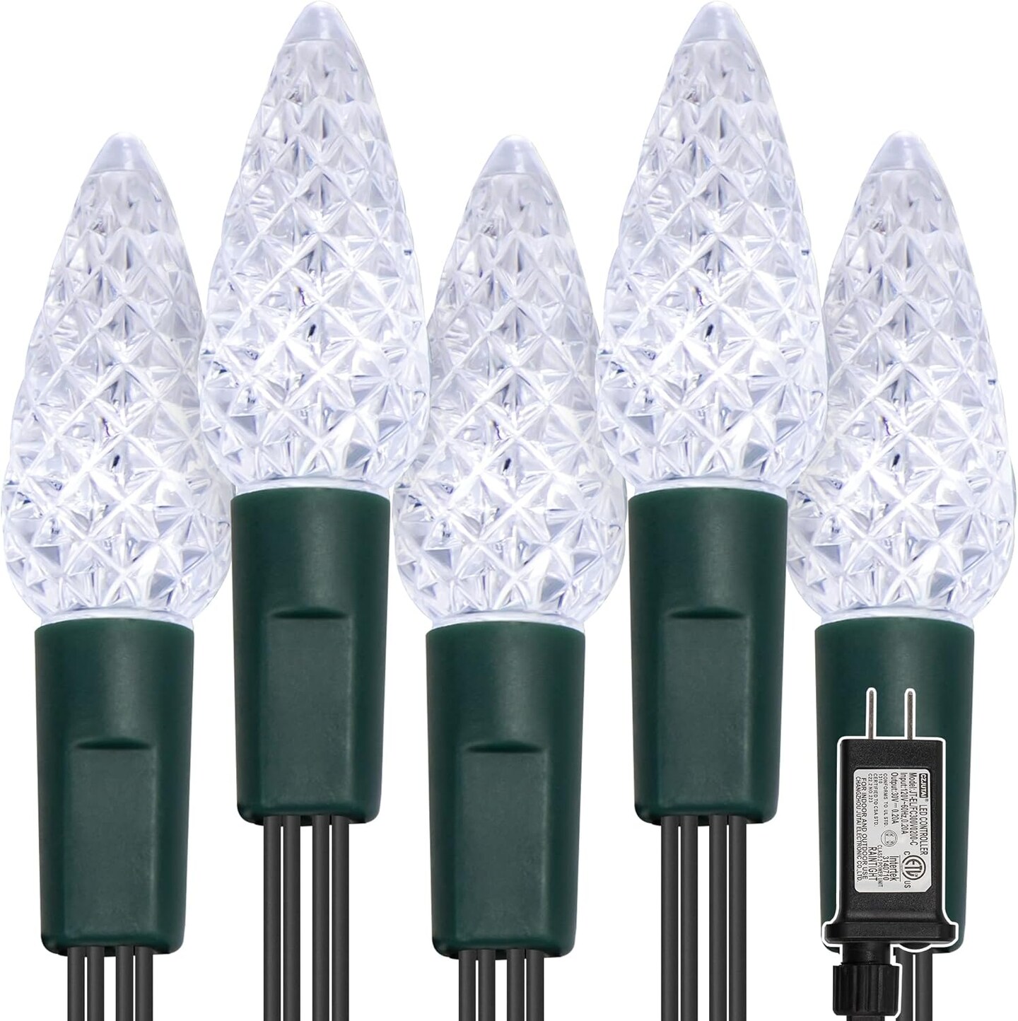 C6 Christmas Lights, 33ft 100 LED Faceted String Lights Green Wire Fairy Lights with 29V Safe Adaptor, 8 Lighting Mode