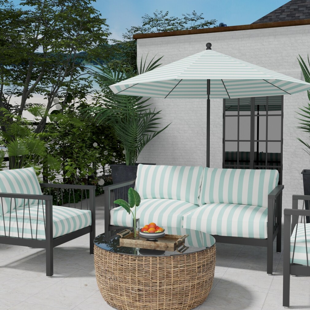 Cabana Glacier - Aqua & Teal Stripe Upholstery Fabric 54 Inches"