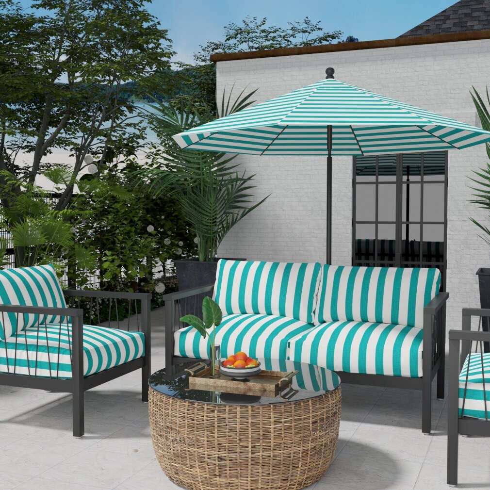 Cabana Peacock - Aqua & Teal Stripe Upholstery Fabric 54 Inches"
