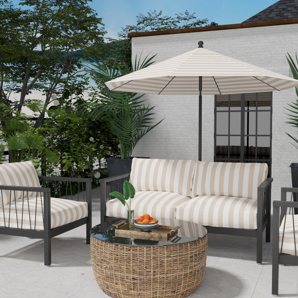 Cabana Sand - Beige & Taupe Stripe Upholstery Fabric 54 Inches"