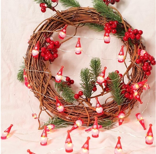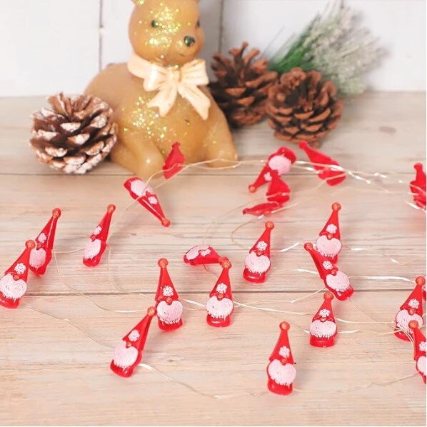 Cafemoon Christmas Gnome String Lights, 10ft 30 LED Red Gnome String Lights with Remote Timer, USB & Battery Powered Winter Twinkle Lights Garland for Christmas Home Bedroom Party Decoration
