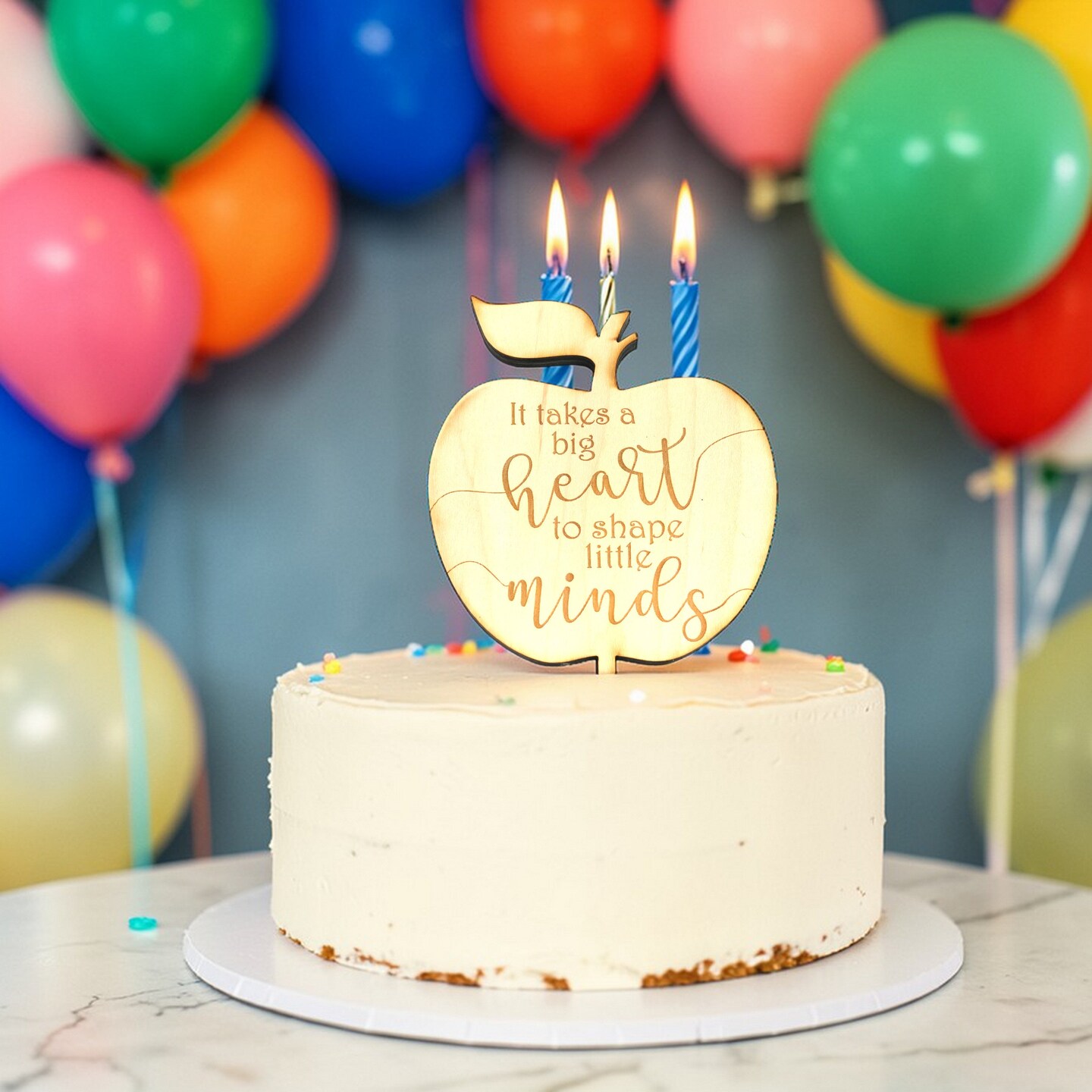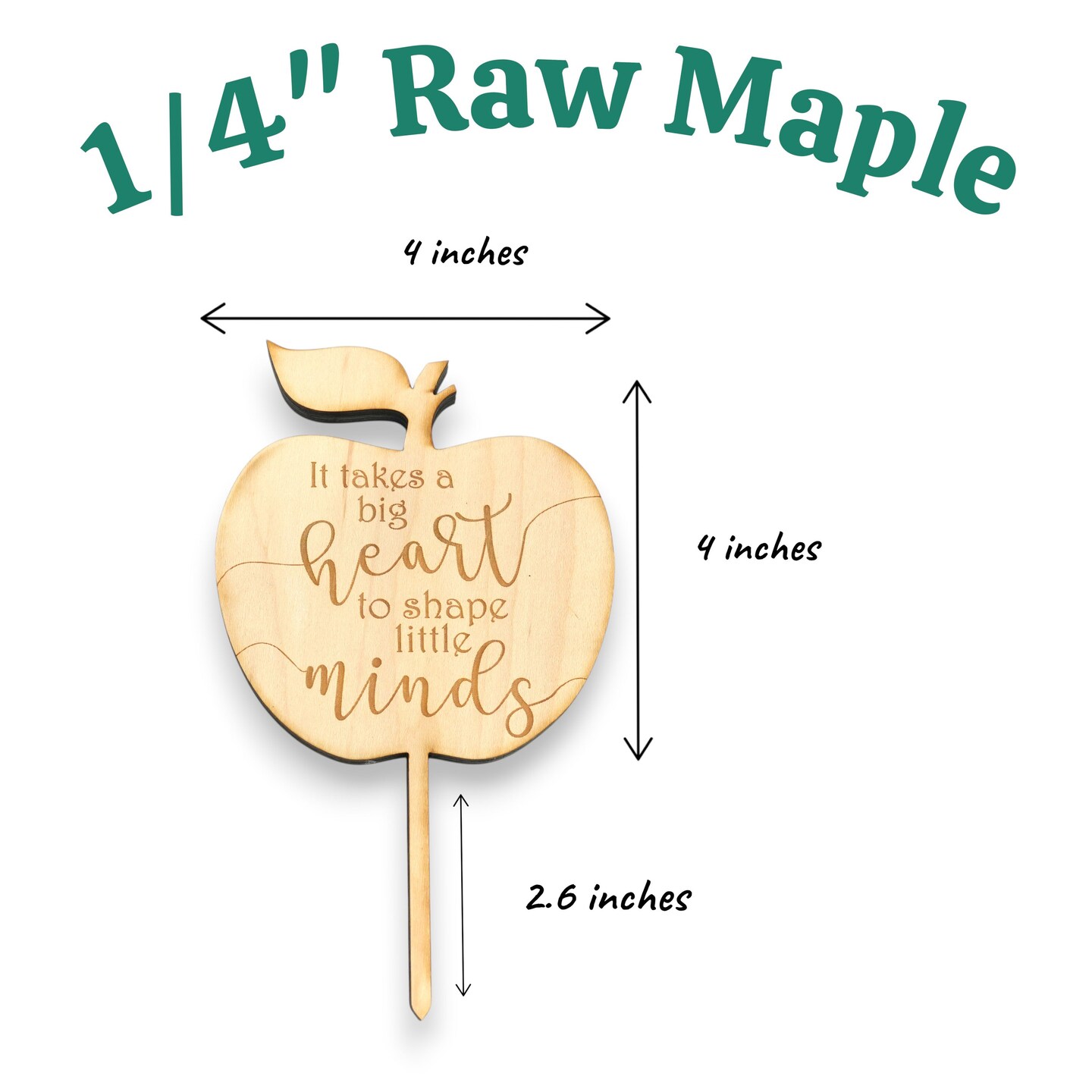 Cake Topper - It takes a big heart to shape little minds - Raw Wood