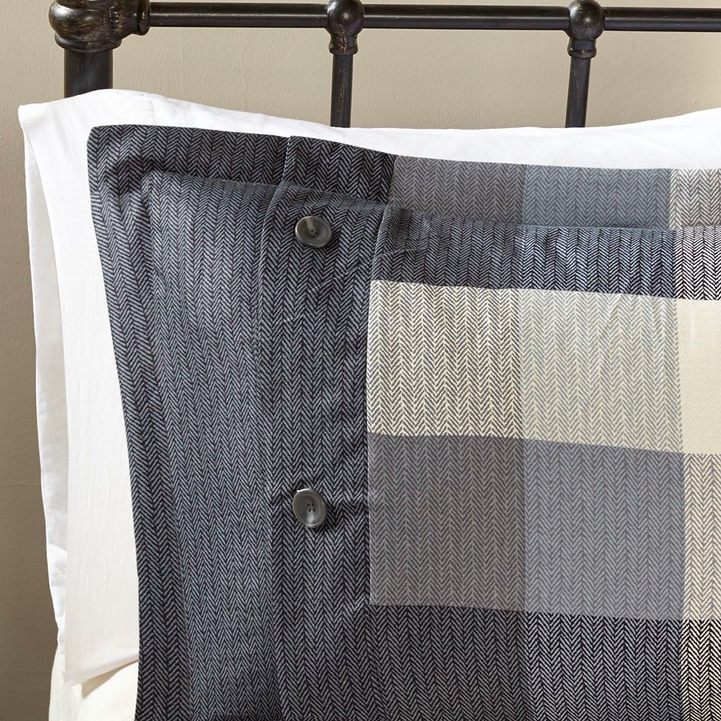 Cal King Herringbone Comforter Set, 7-Piece Buffalo Plaid Bedding Collection