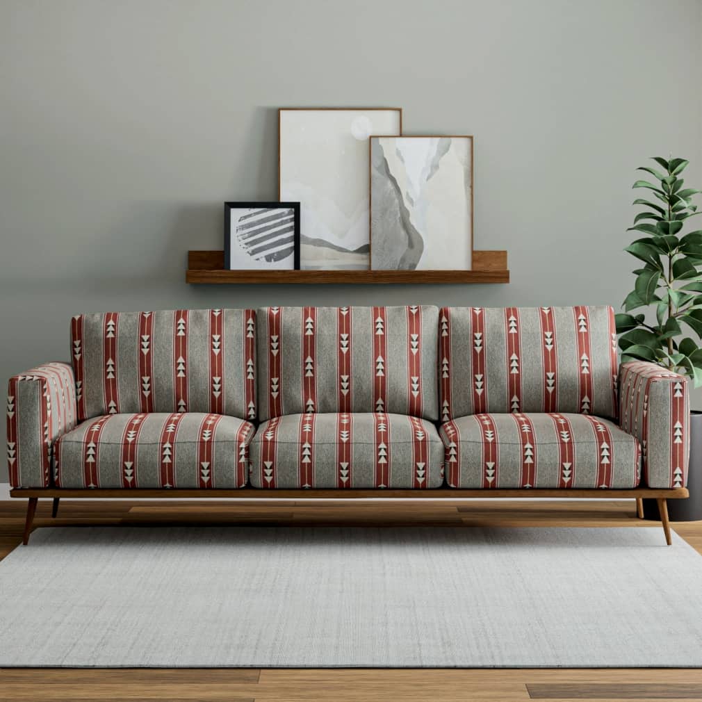Caliente - Red & Burgundy Abstract & Geometric,Global,Southwestern,Stripe Upholstery Fabric 54 Inches"