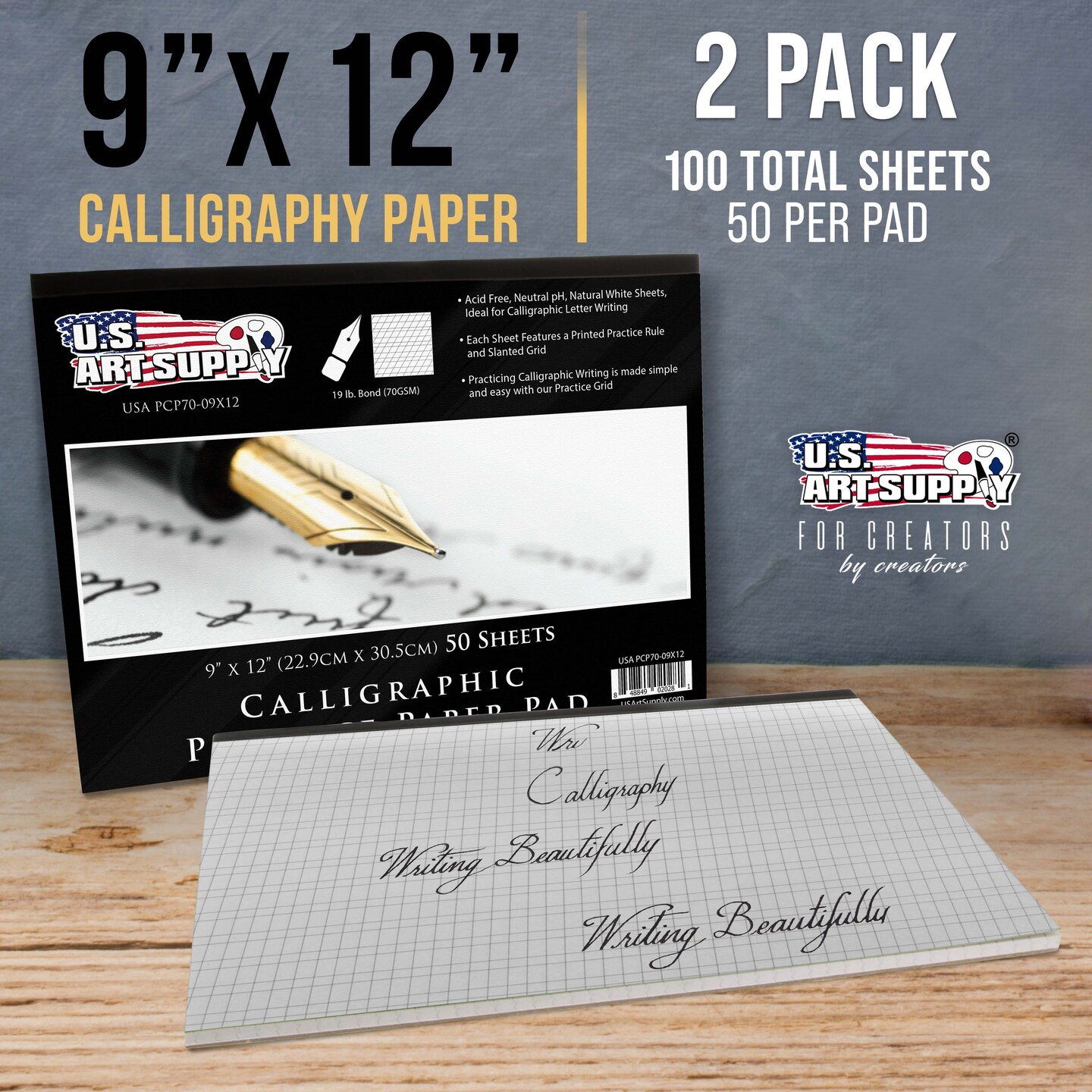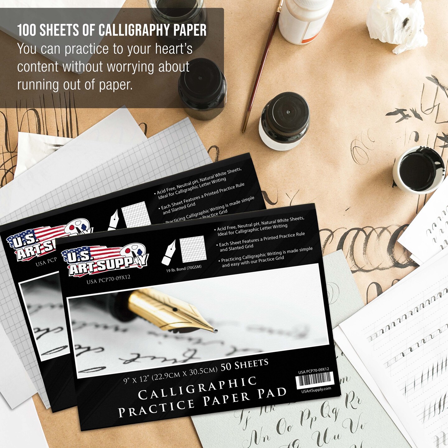 Calligraphy Practice Paper Pad (2 Pack) - 9" x 12", 19lb Bond (70gsm), Pad of 50 Sheets (100 Total) with Printed Slanted Grid - Calligraphy Practice Book for Beginners