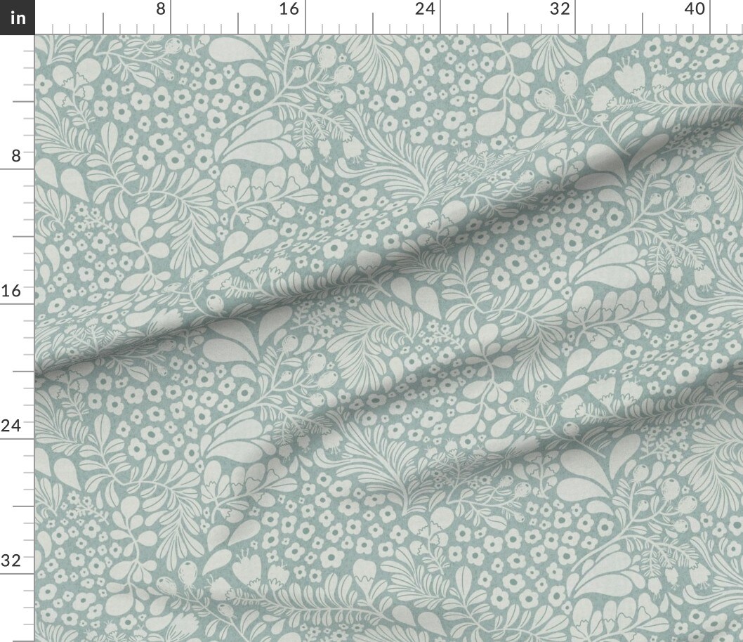 Calm Botanical Tranquil Flowers Serene Leaves Blue Gray Vine Wildflowers Floral Custom Printed Fabric by Spoonflower Various Fabrics by the Yard or Fat Quarter