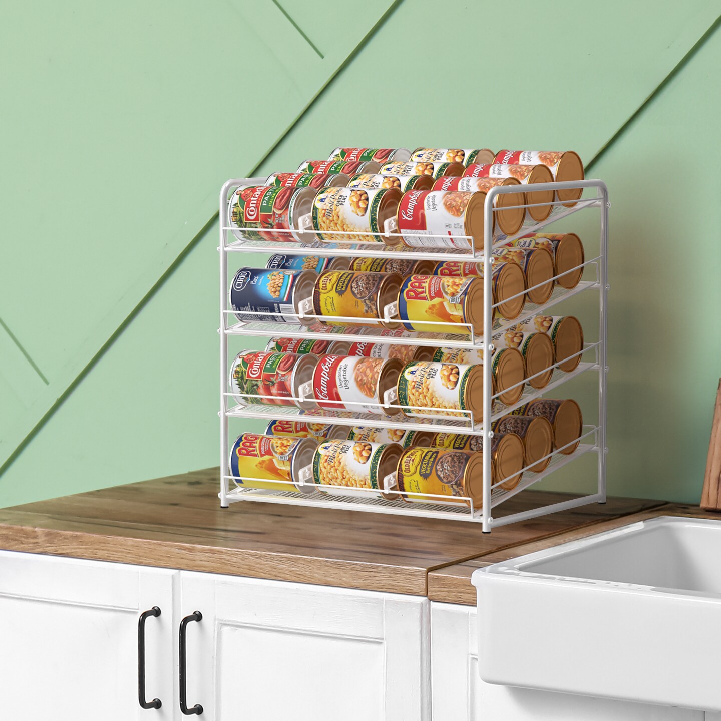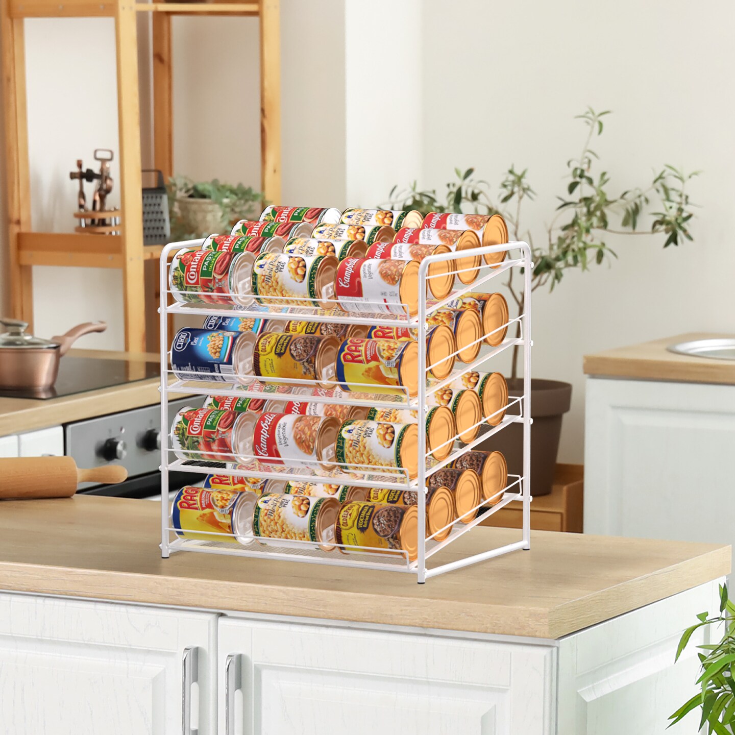 Can Rack Organizer 4-Tier Metal Can Rack Organizer Holds Up to 48 Cans, Can Dispenser for Pantry, Kitchen, Cabinets and Countertops