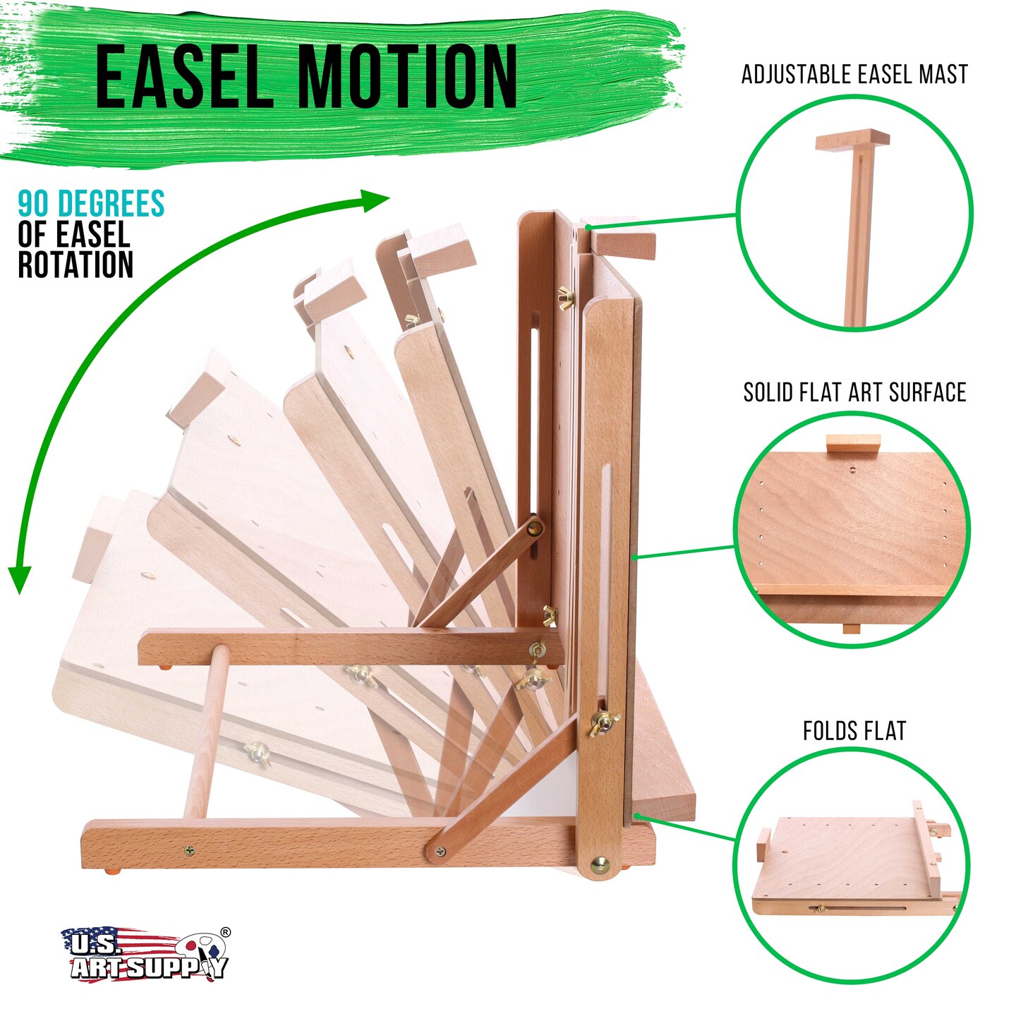 Cancun Solid Wooden Tabletop Easel - Artist Studio Desktop Drawing Table, Portable Drafting Table, Adjustable Art Board, Tabletop Easel for Painting, Holds Up to 23" Canvas, Beechwood