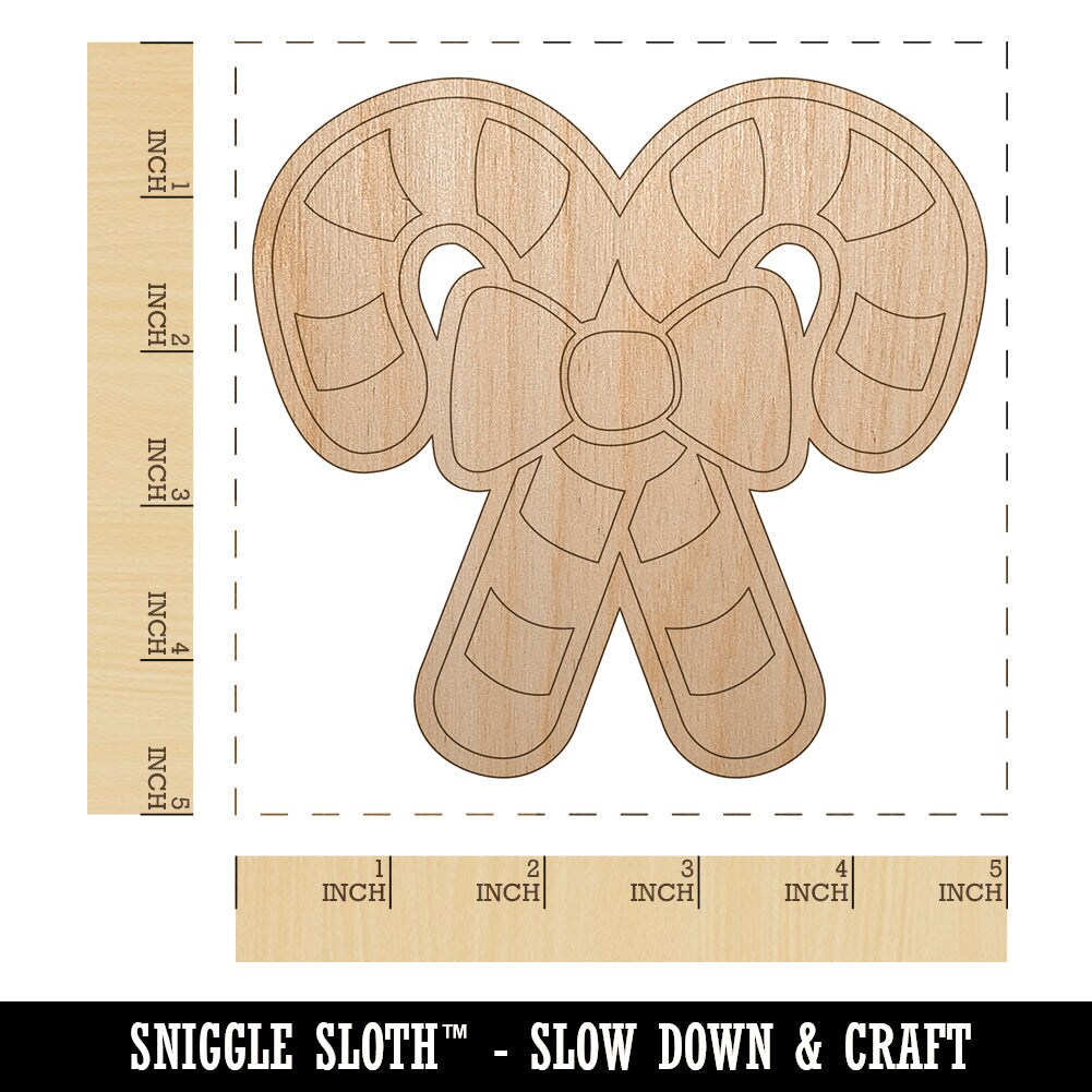 Candy Canes with Bow Christmas Unfinished Wood Shape Piece Cutout for DIY Craft Projects