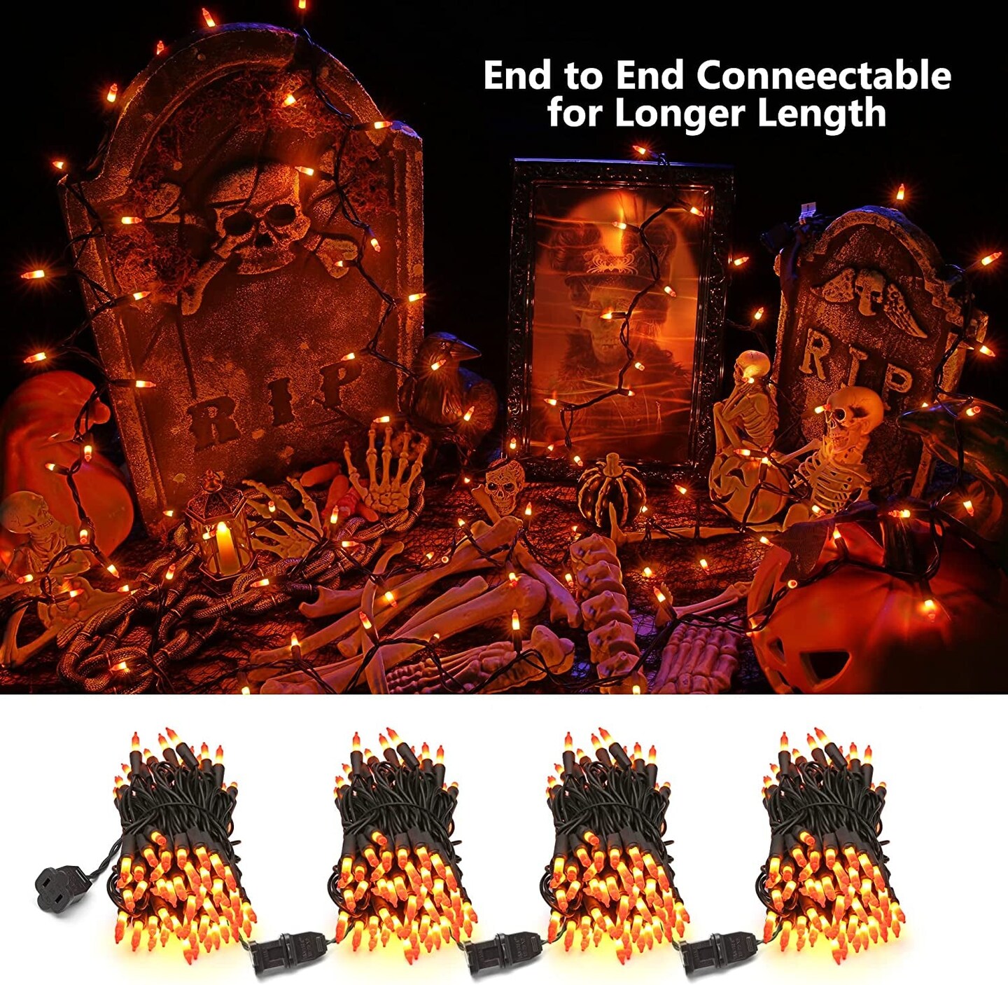 Candy Corn Halloween Lights, 100 Count Orange & Yellow UL Certified Incandescent Mini String Lights, Black Wire, Indoor & Outdoor Lighting Decoration