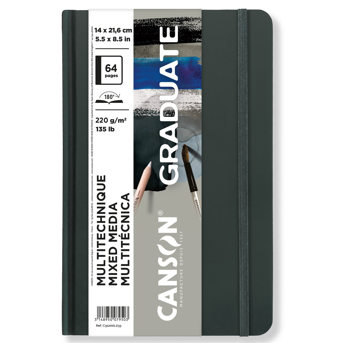 Canson Graduate Mixed Media Book Grey 5.5"x8.5"-32 sheets