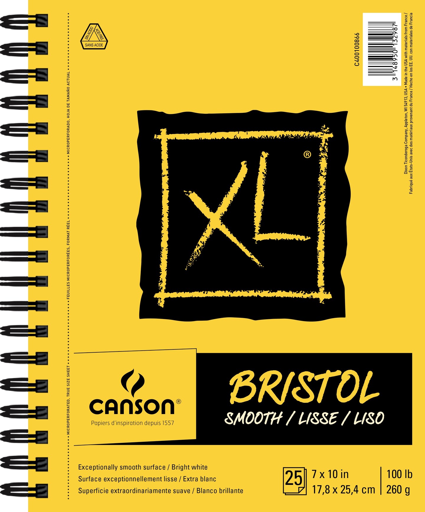 Canson XL Bristol Smooth Pad 7"X10"-Wire Bound, 25 Sheets