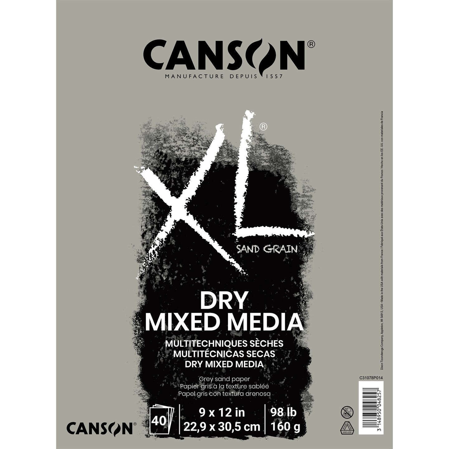 Canson XL Sand Grain Dry Mixed Media Pad Grey 9"X12"-Fold Over, 40 Sheets
