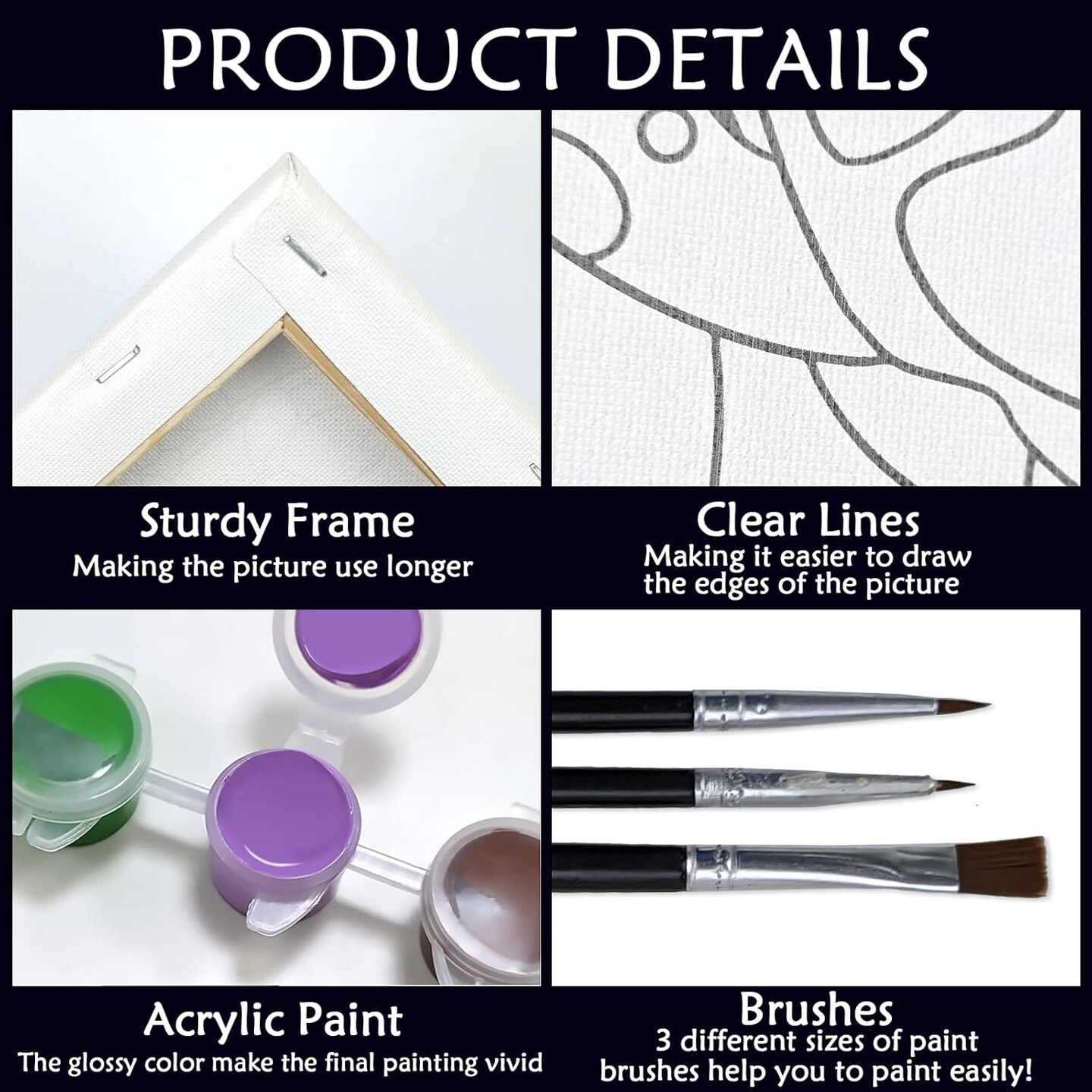 Canvas Painting Kit Paint and Sip Kit for Adults Pre Drawn Canvas for Painting (8x10)