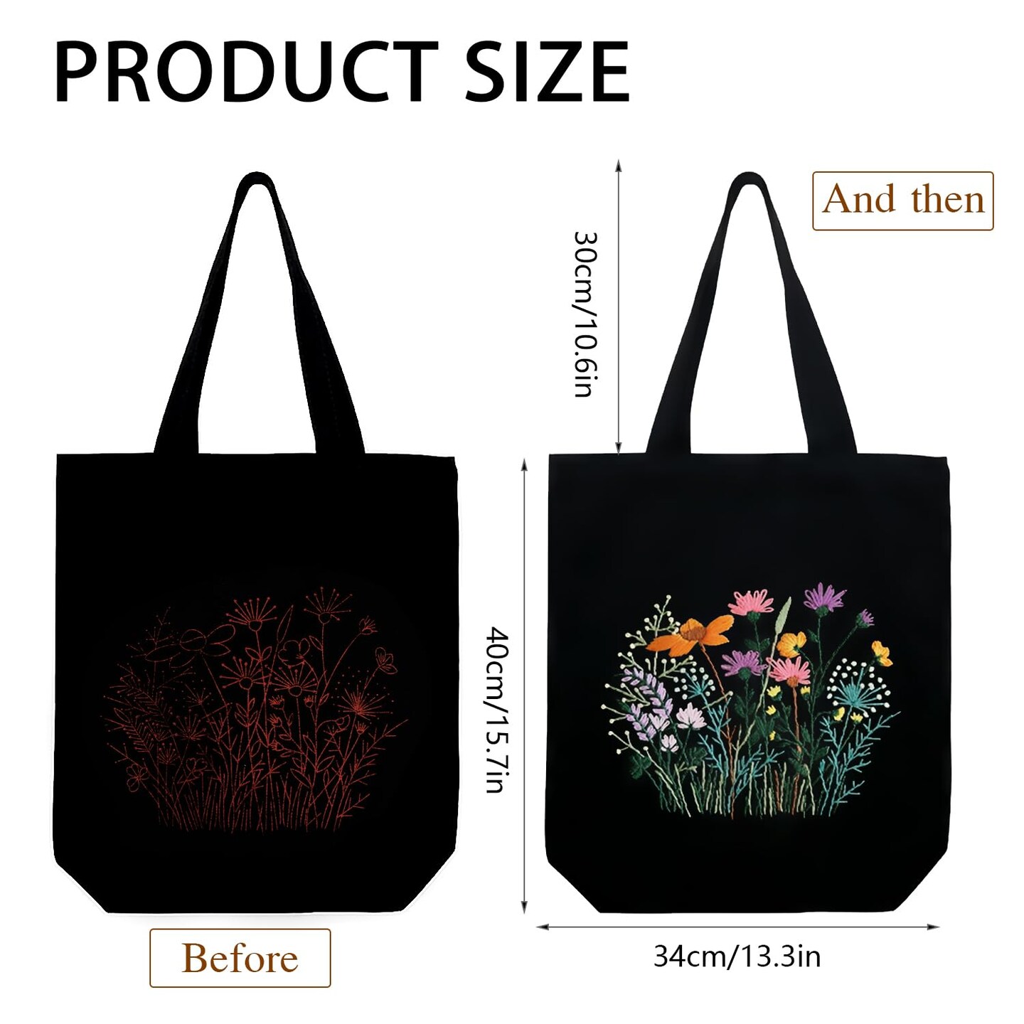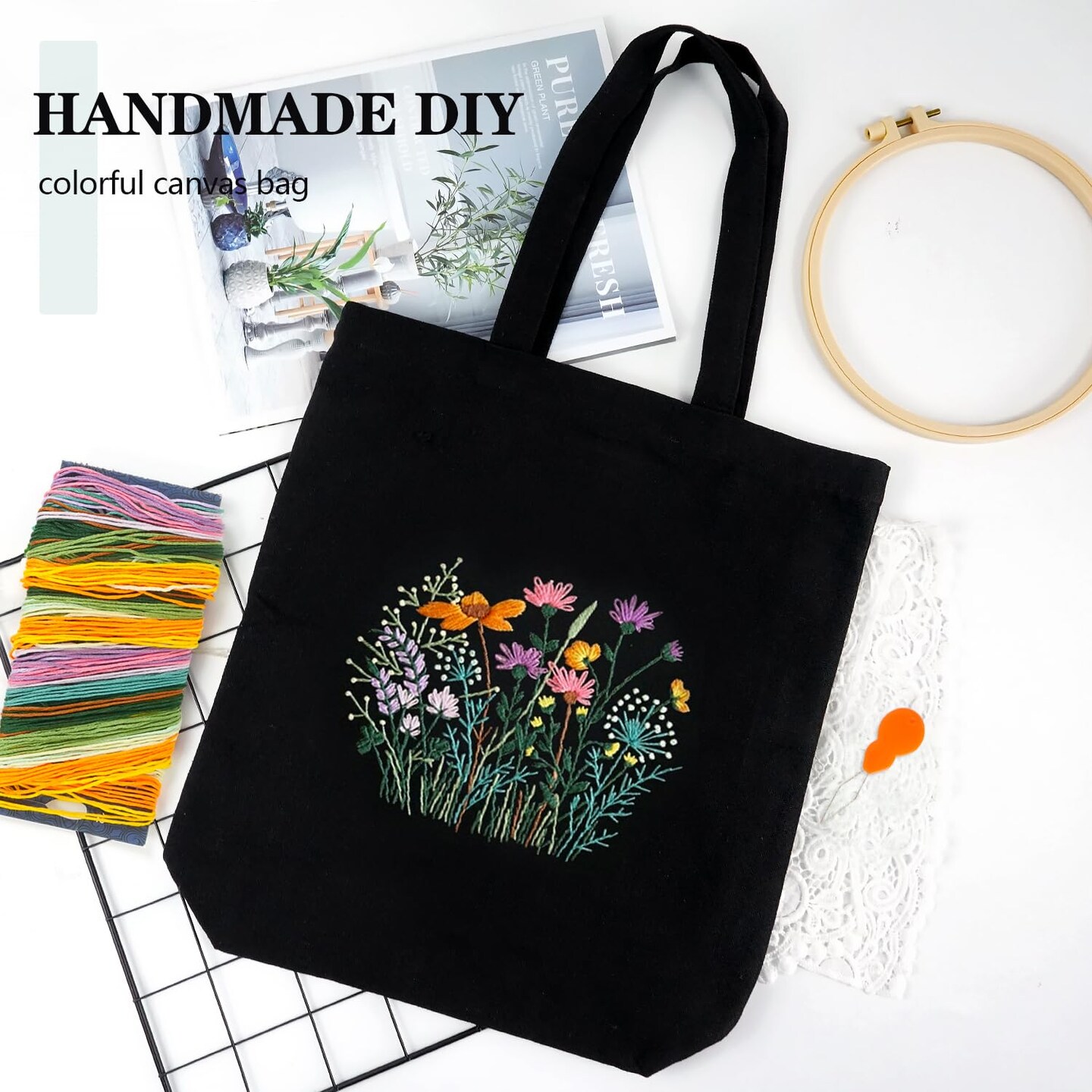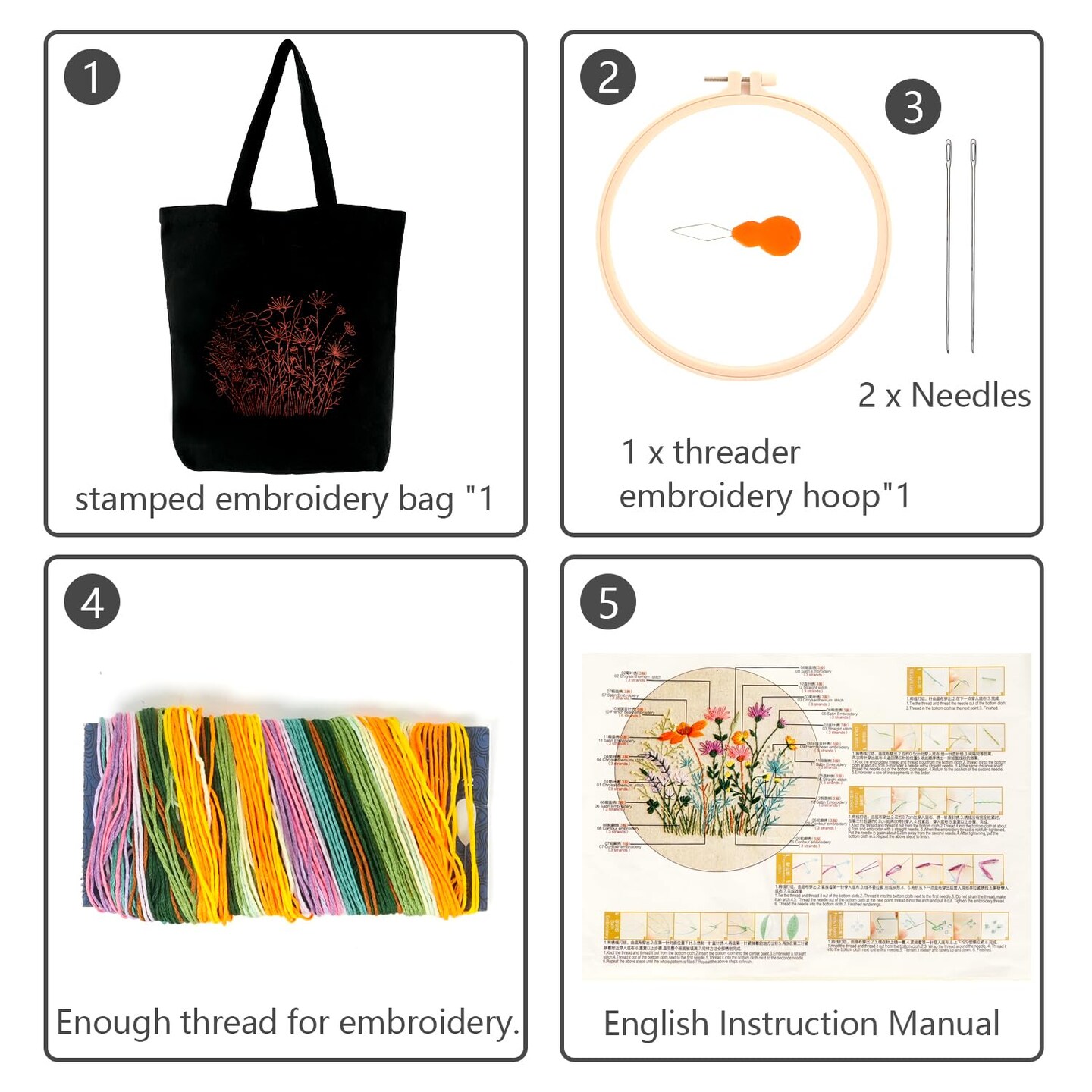 Canvas Tote Bag Embroidery Kit with Pattern, Beginner Embroidery Kits for Adults, Arts and DIY Crafts Embroidery Starter kit, Include Stamped Embroidery Bag, Embroidery Hoops, Color Threads and Tool.