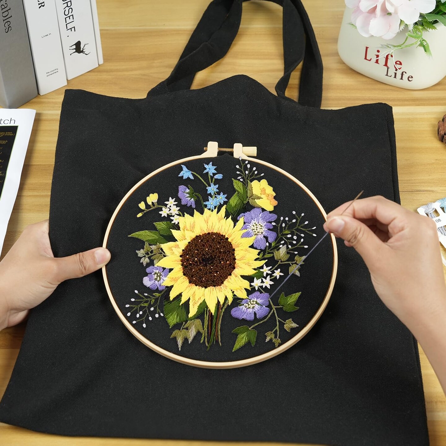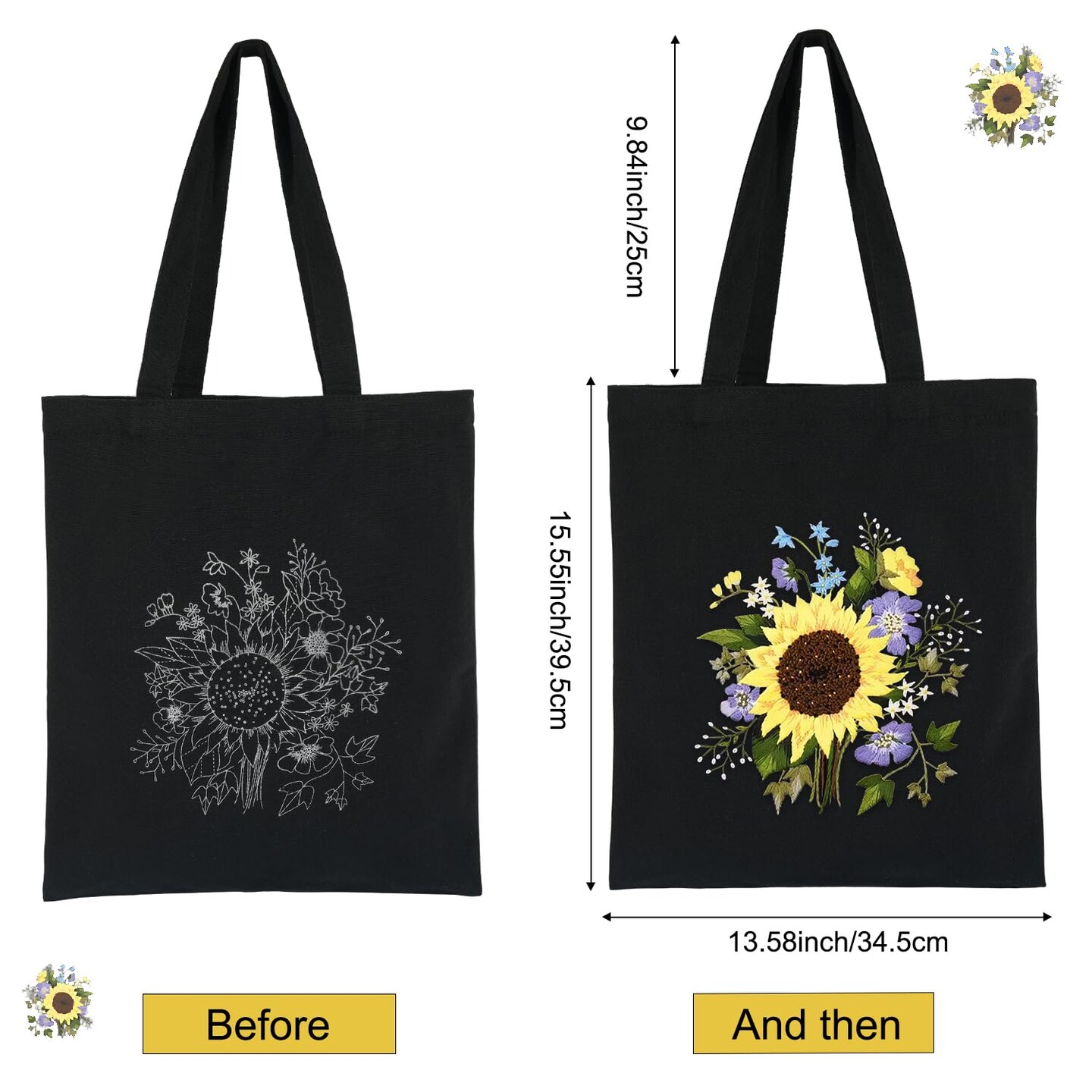 Canvas Tote Bag Embroidery Kit with Sunflower Pattern, Embroidery Kits for Beginners Adults, Arts and DIY Crafts Embroidery Starter kit, Include Stamped Embroidery Bag, Color Threads, Embroidery Tools