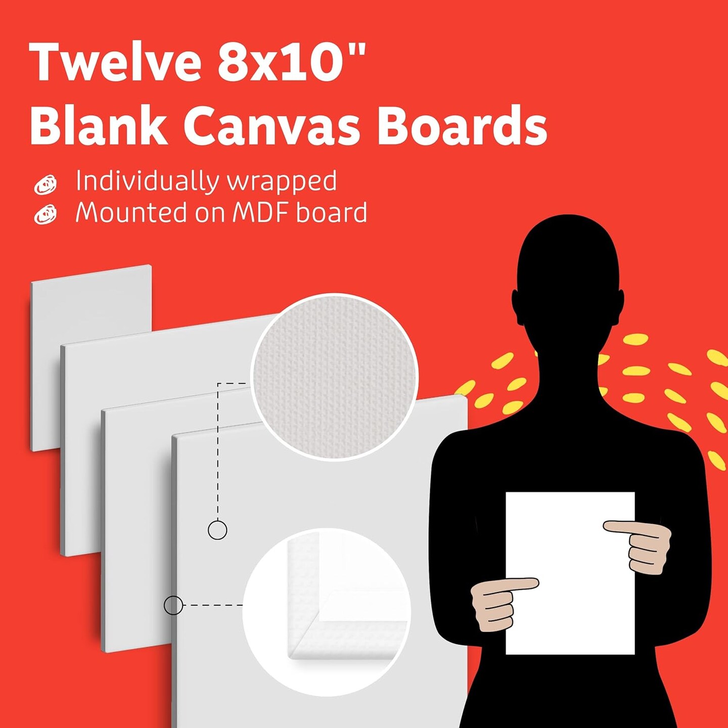 Canvases for Painting - Pack of 12, 8 x 10 Inch Blank White Canvas Boards