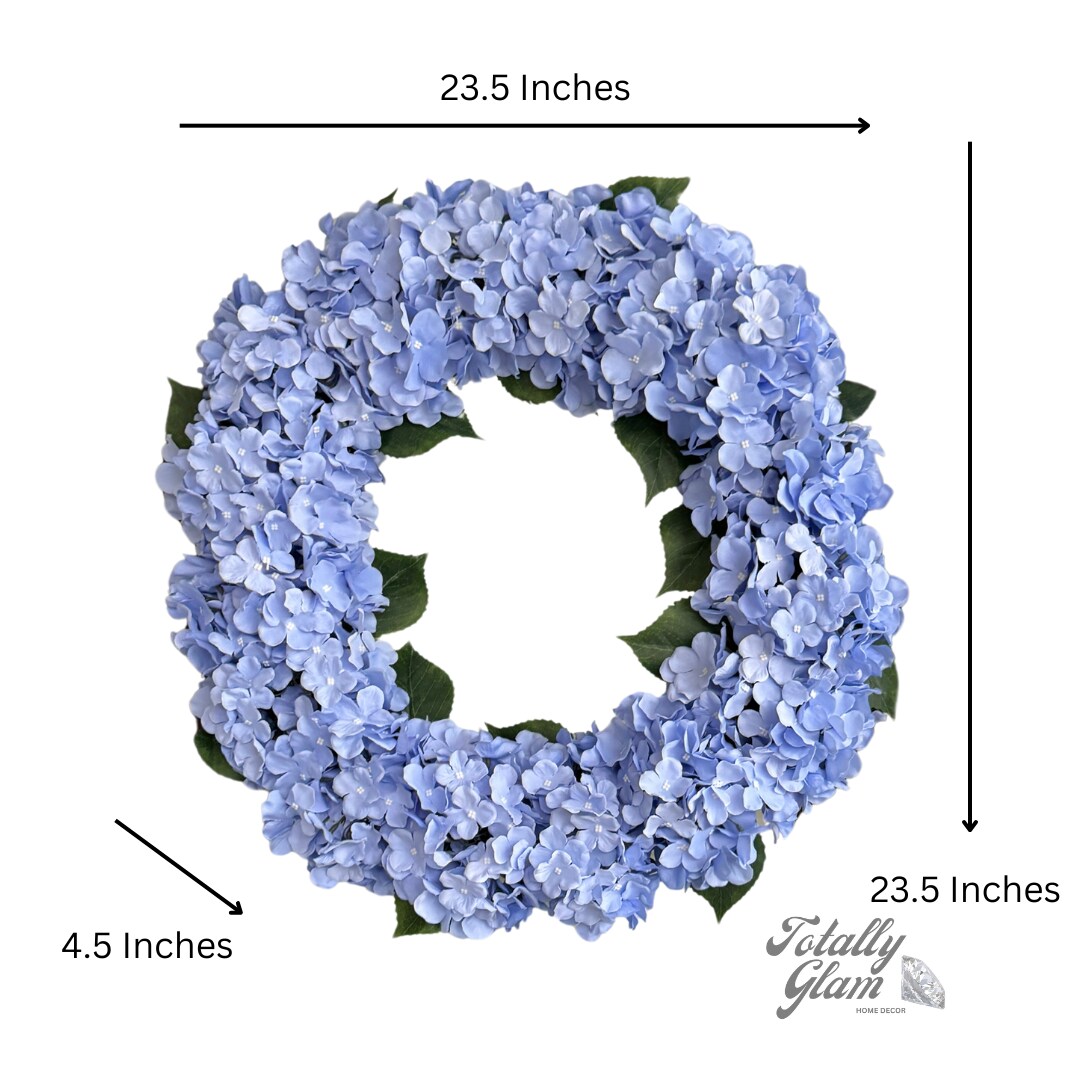 Capri Large Blue Silk Hydrangea Wreath 23” All-Season UV Resistant Front Door Wreath with 16 Hydrangea Heads on Natural Grapevine