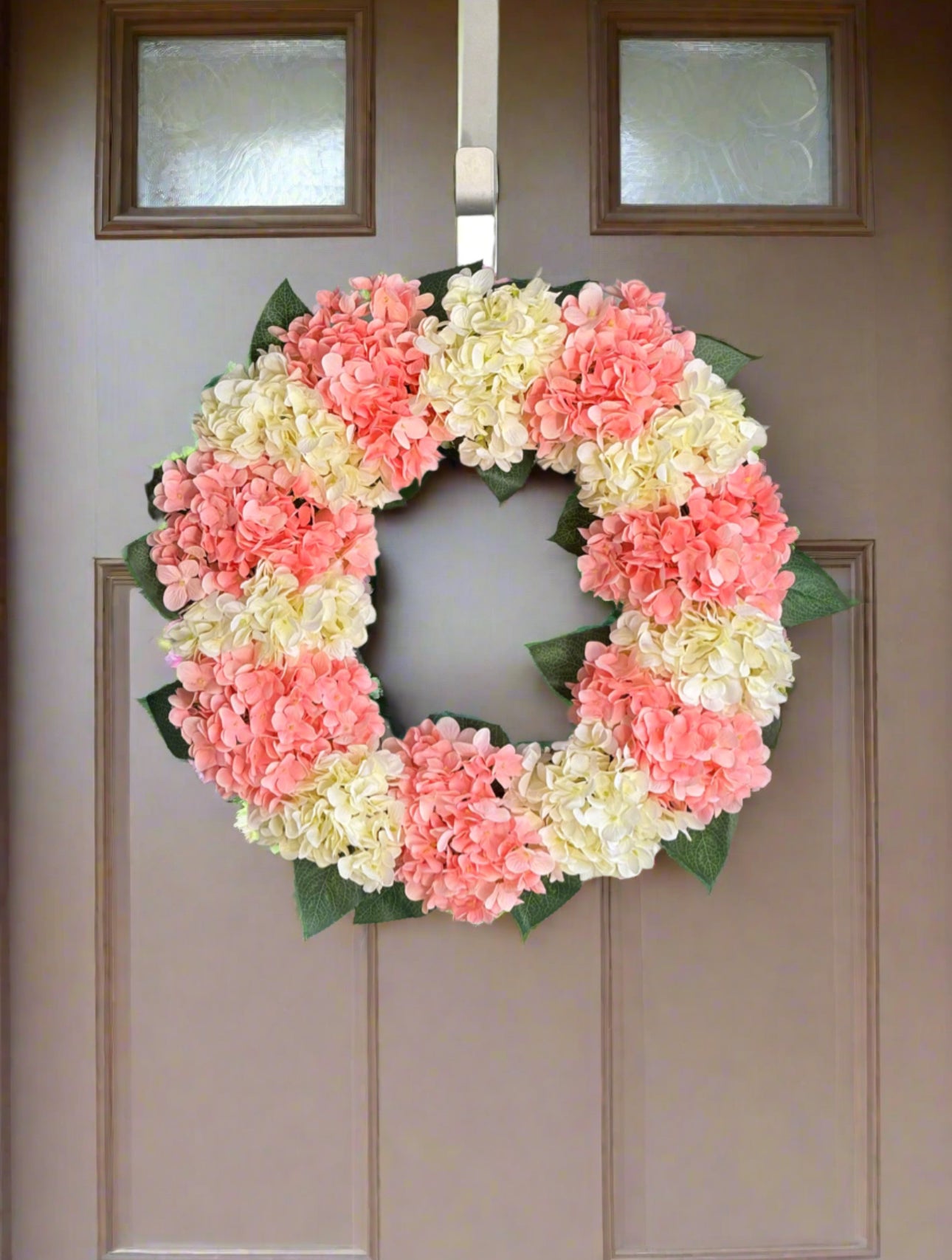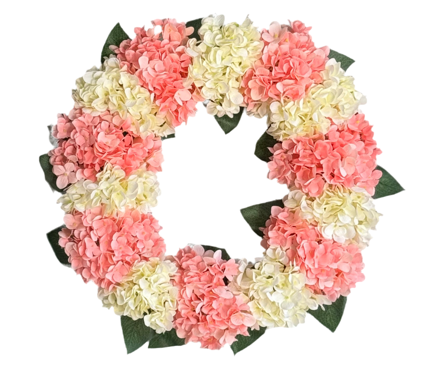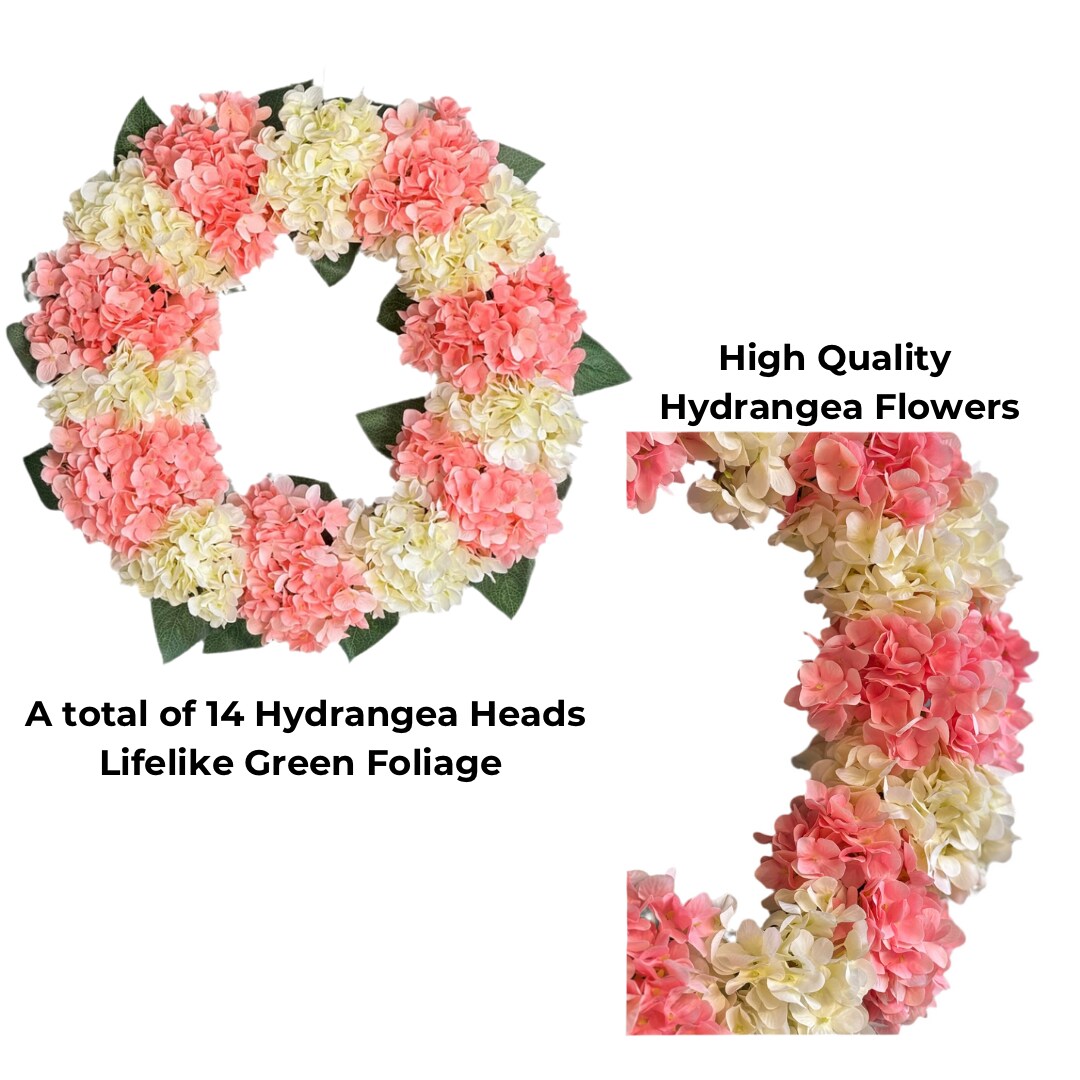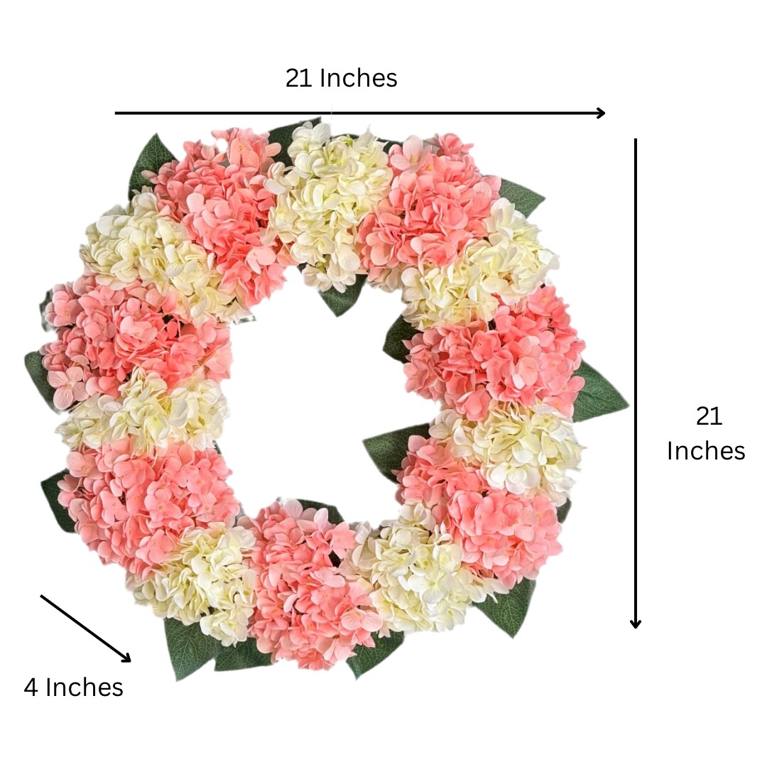 Capri Peach Pink Cream White Hydrangea Wreath, 21 In All Season UV Resistant Spring Wreath