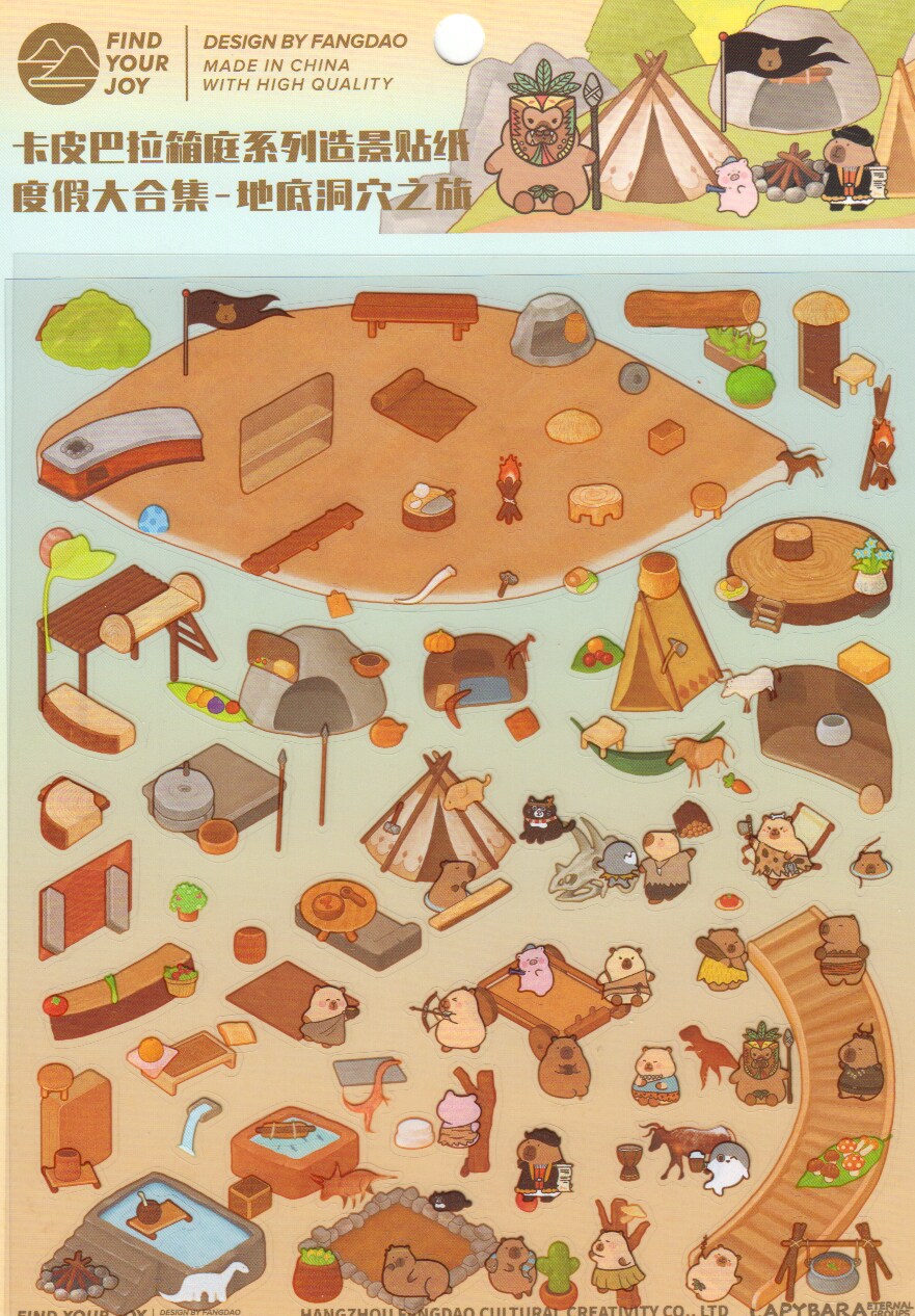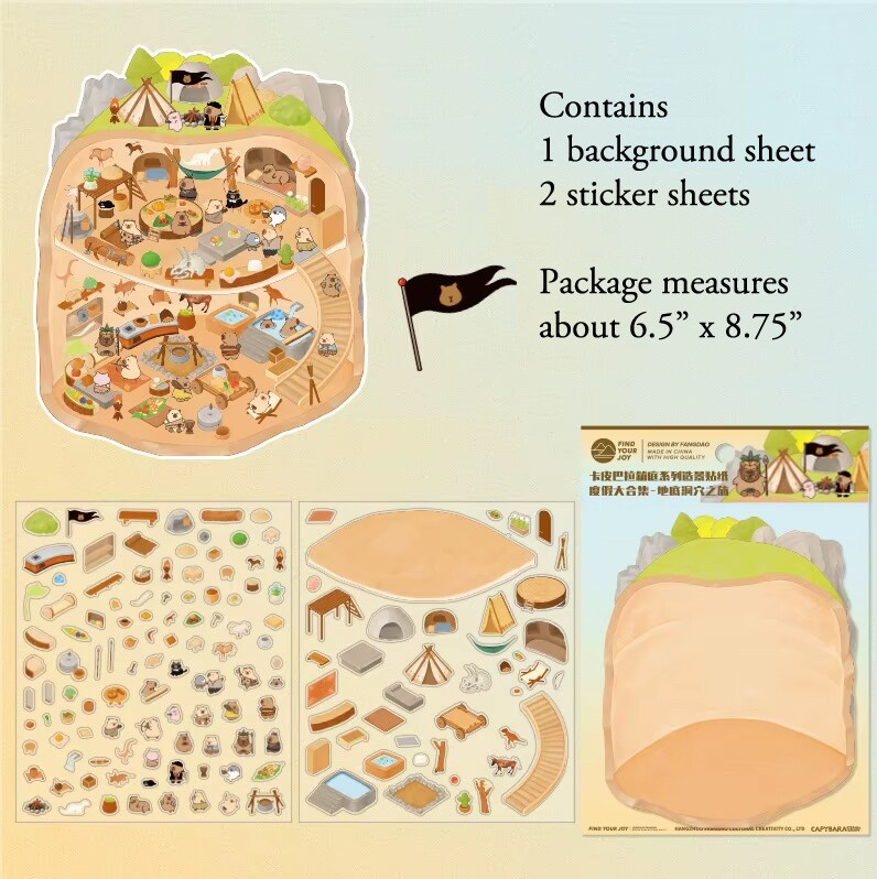 Capybara Cave Exhibit Isometric Stickers, 3D Room Scene, Adorabilities