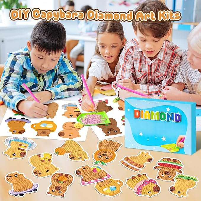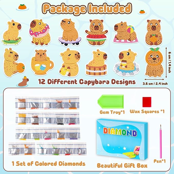 Capybara Diamond Art Kits - 12 Spring Easter Capybara 5D DIY Creative Art Craft Mosaic Sticker for Kids&Adult Painting Craft Beginner Digital Diamond Parent Child Activity Kit Birthday Gift