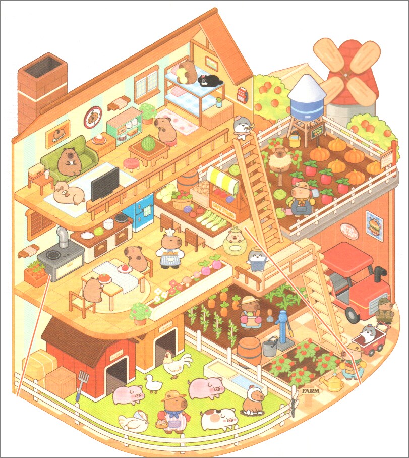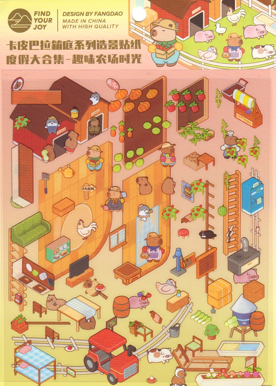 Capybara Farm Sticker Scene, Isometric Room Stickers, Adorabilities